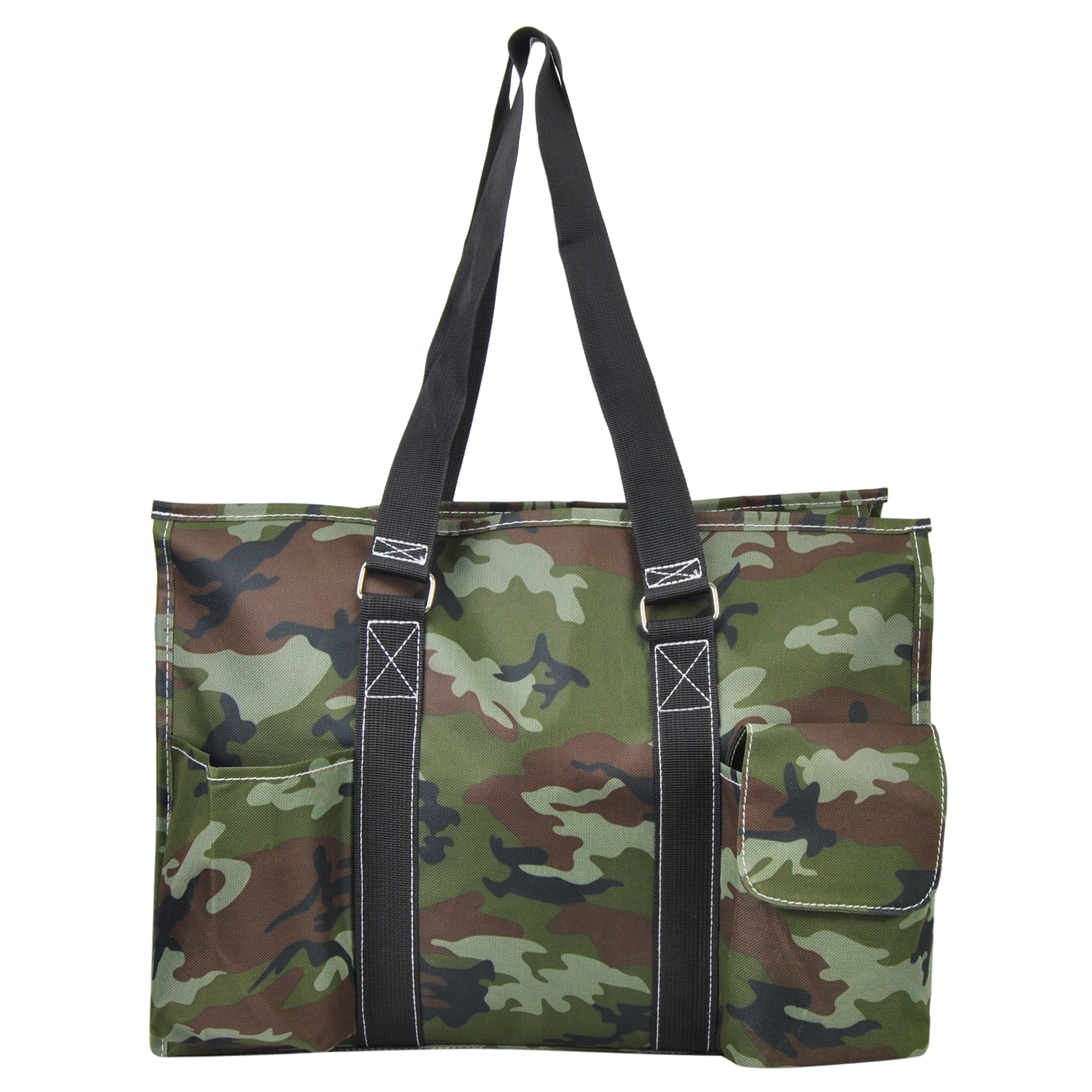 Great bag to carry everything you need: 2 front open pockets, 2 rear pockets with one Velcro flap closure. Includes, side mesh pockets on both sides to carry bottles, and a mini side pocket for small important items. Zip-top closure to keep all items safe and in place and as well comes with a key ring in front to keep keys safe.