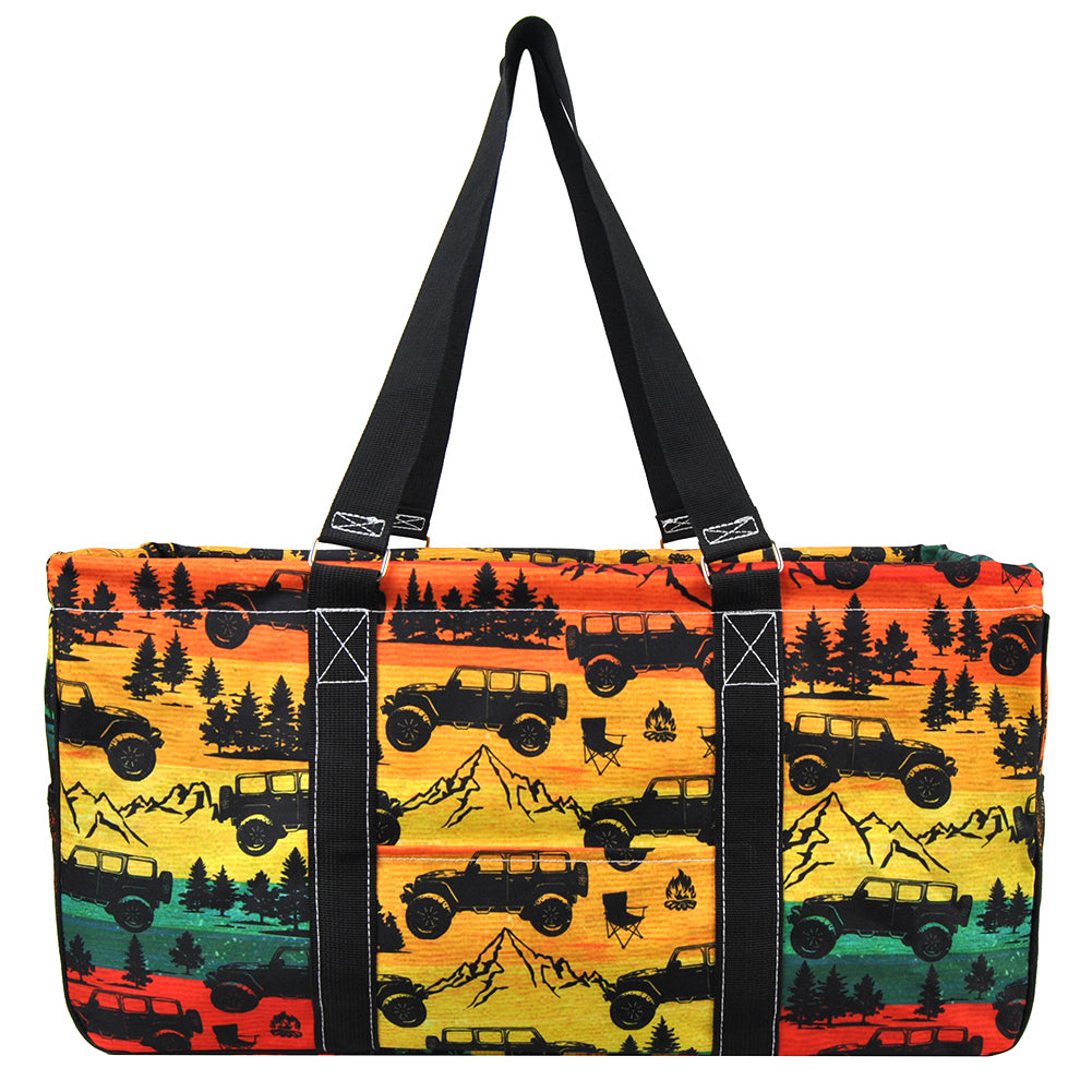 The NGIL Utility Tote Bag is your ultimate carry-all—cute, practical, and ready for any occasion. Crafted from durable, water-resistant canvas, this large tote is built to handle busy days and outdoor adventures alike. Measuring approximately 23"L x 11.5"D x 12.5"H, it’s spacious enough for beach trips, picnics, camping, shopping, or even organizing toys and supplies. The collapsible design with push-down metal bars and Velcro sides keeps it sturdy when in use and easy to store when not. An open top allows quick access to towels, groceries, or essentials, while a mesh pocket and small open pocket keep smaller items handy. Finished with double handles that drop about 13" for comfortable carrying, this tote combines functionality with effortless style. It’s a thoughtful and versatile gift for friends, teachers, and family alike.