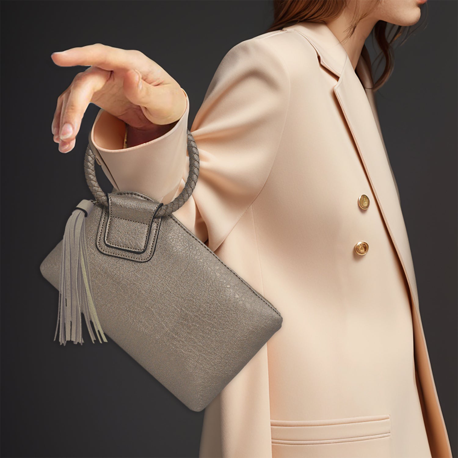 Bronze NGIL Fashion Faux Leather Mini Purse With Fringe Tassel