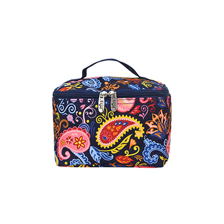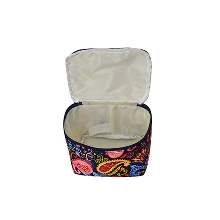 This cosmetic case is perfect to go cosmetic case. It has a single handle and a top zipper closure. It makes it easy to travel and carry all cosmetics in one bag. It is big enough to hold foundation makeup, lipsticks, and makeup brushes.