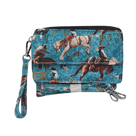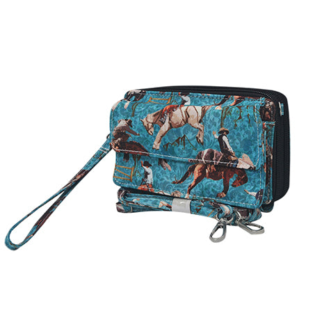 The NGIL Canvas All in One Wallet is the perfect solution for your everyday needs! This spacious wallet is made from canvas and measures approx. 6.5" (L) X 2.25" (W) X 4.25" (H). It features a front magnetic pocket with dimensions of approx. 6.5" x 3.5", allowing you to easily store your cell phone, whether it's an iPhone 7+ or Samsung Galaxy. Additionally, this wallet includes a spacious one zipper compartment which offers two slip pockets and an additional side pocket & zipper coin pocket for extra storage capabilities. The other zippered compartment boasts a large bill pocket, 8 card slips, 1 ID window and 4 open pockets to provide you with room to store your cards and cash securely and organized. This all-in-one wallet is given the final finishing touch by a convenient 55" removable and adjustable strap as well as 5.25" handle drop of its own removable wrist strap enabling you to transport it with ease! Get ready to take on your day with ease using this perfect all-in-one wallet!