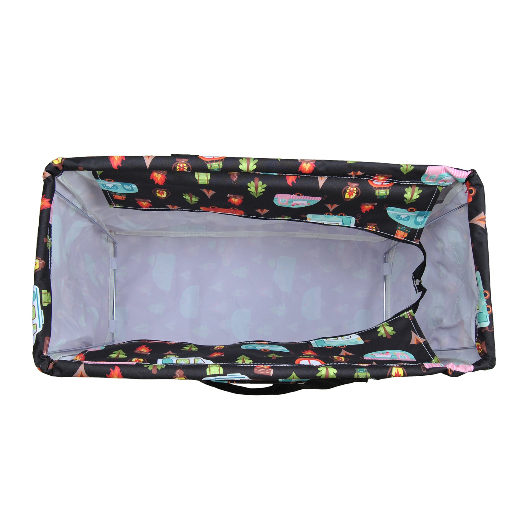 It contains mesh pockets on each side and has a top zipper closure. This utility tote can be used for groceries or can be used as a large toy box. Taking a long road trip This extra large utility basket is the perfect storage basket to help keep all your snacks, clothes, or other miscellaneous items.