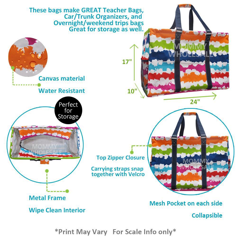 This bag measures approximately: 24"(L) X 10"(W) X 17"(H) with a Handle Drop of approximately 12" long;. It makes a perfect utility basket for beach trips, picnics, or can be used as a laundry hamper. This tote contains carrying straps that snap together with Velcro to help facilitate your lifestyle.