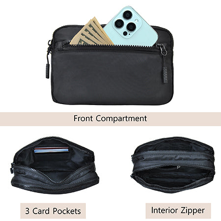 With two main zipper compartments and a handy exterior pocket, you’ll have all the storage you need for your adventures. The large main compartment includes three card slots, while the second compartment features a side pouch for those must-have essentials. Say goodbye to clutter and hello to effortless organization!