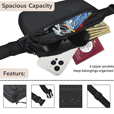 Measuring 8.26" x 5.31" x 2.75", this belt bag comes with an adjustable strap that fits everyone from 33" to 48.5", so you can rock it as a waist bag, shoulder bag, or crossbody bag with flair. Whether you’re out for a leisurely stroll or conquering the great outdoors through walking, running, hiking, or biking, this bag is your go-to companion.