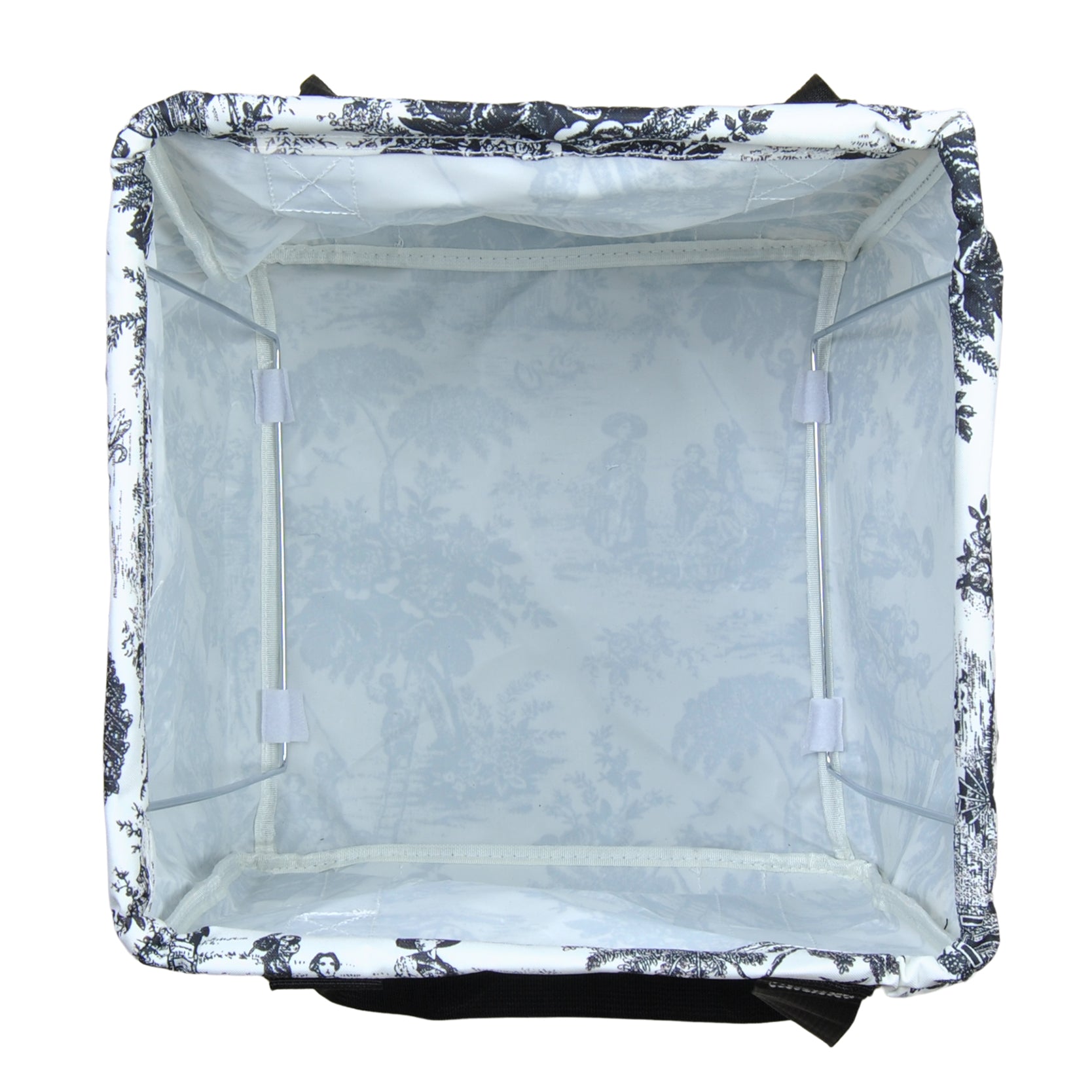This mini utility basket is supported with metal frames to hold the tote in place. The metal frames are collapsible and can be made flat for easy store when not being in use.