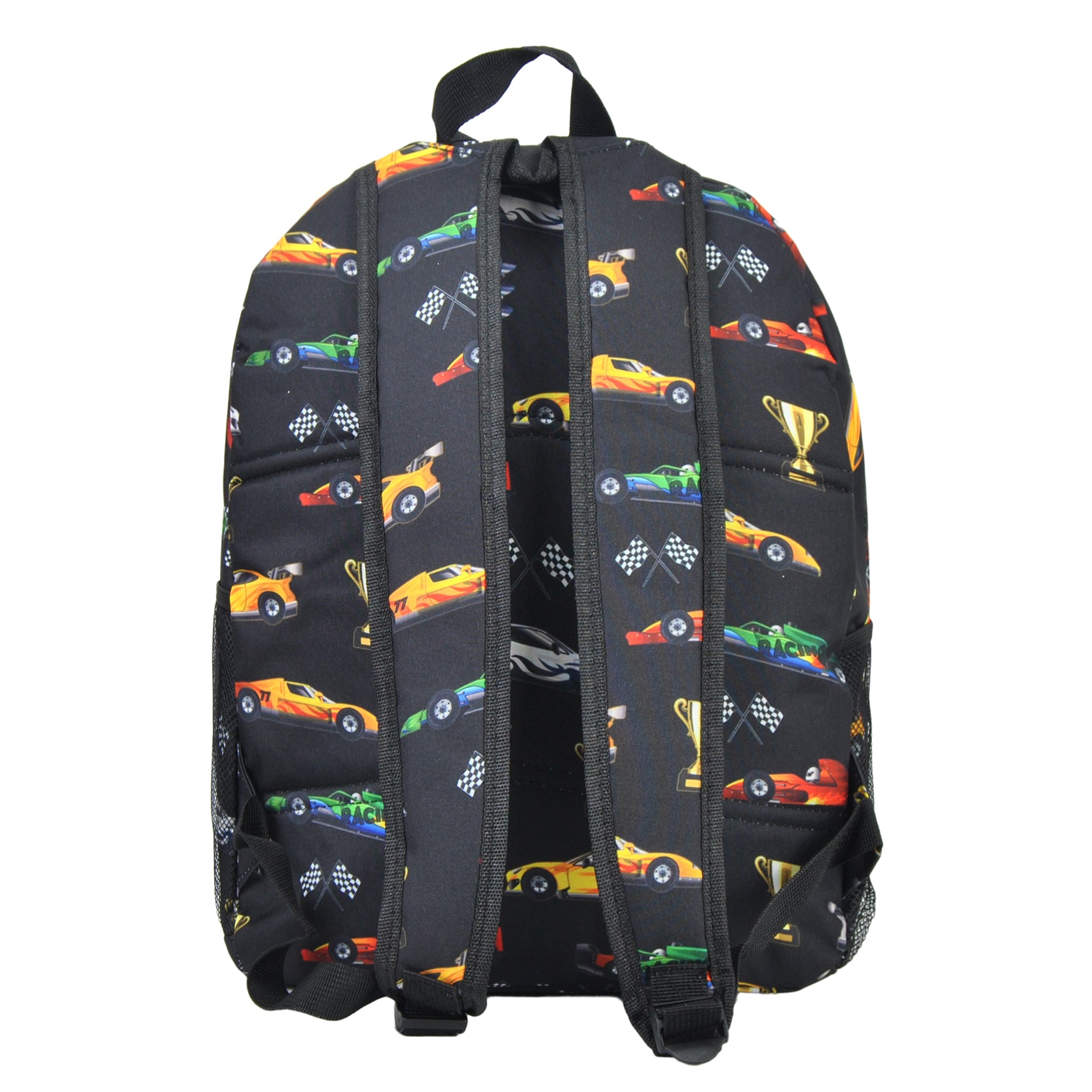 This bag includes two side net pockets, with zipper closures, and one front pocket.  With the dimensions of  approximately 13 ¼"(L) X 5"(W) X 15"(H). These bags can securely store your belongings while you're on the go and keep you organized and stylish.