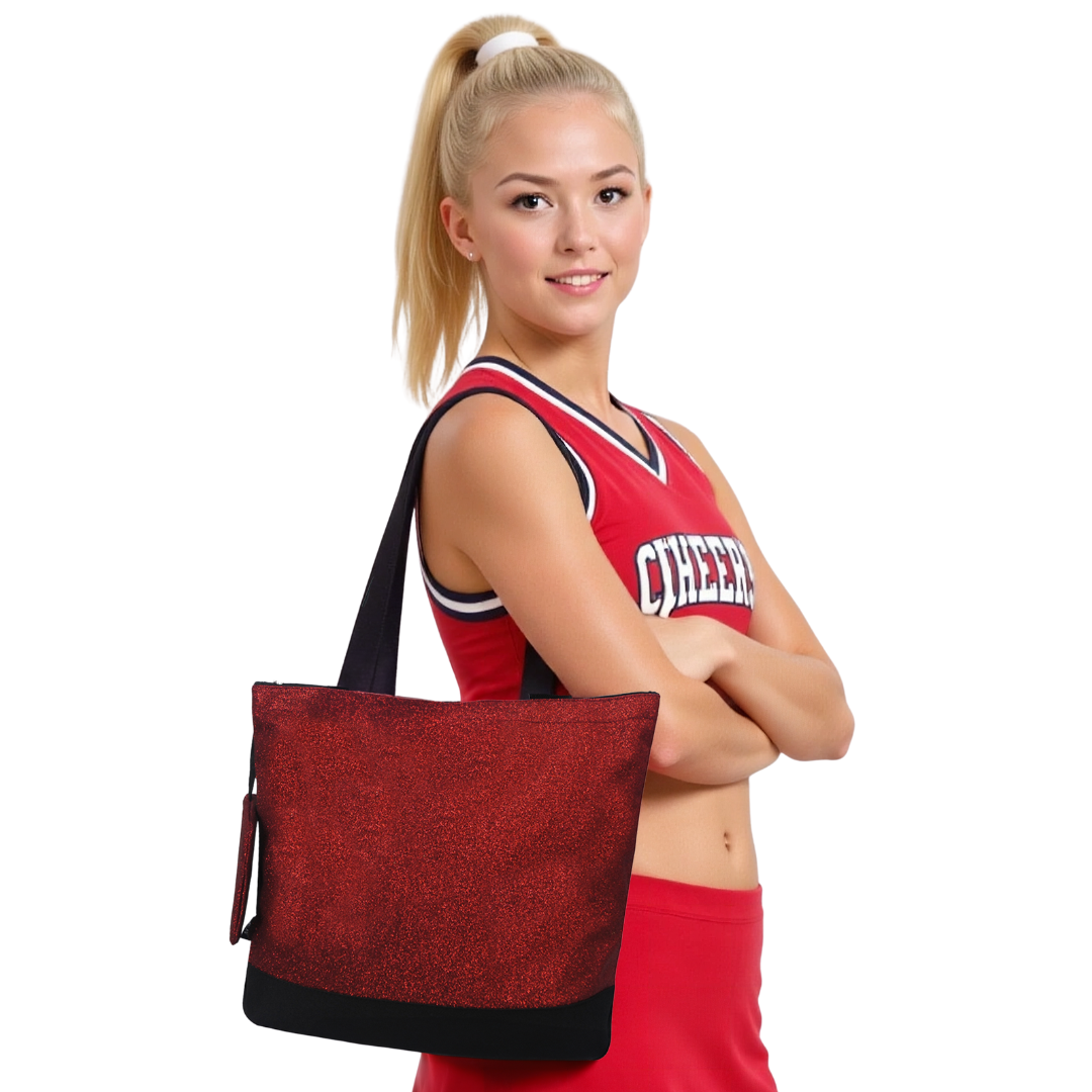 Chic, durable, and easy to carry, this glitter tote also makes a great gift for coaches, teachers, and team moms. Stylish enough for everyday use and tough enough for the competition hustle!