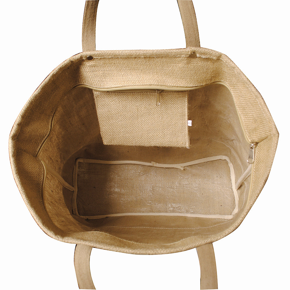 The NGIL Jute Medium Tote Bag is the perfect blend of rustic charm and everyday functionality. Crafted from durable jute, this stylish tote features double leather handles for a comfortable grip and a top zipper closure to keep your essentials secure. With a spacious interior and a convenient inside zipper pocket, it’s perfect for carrying everything from daily necessities to weekend must-haves. Measuring 21¼"(L) x 15"(H) x 7"(W) with an 8½" handle drop, it offers plenty of room without feeling bulky. Plus, it’s monogrammable, making it a great personalized gift or a unique touch to your collection. Whether you're running errands, heading to the market, or packing for a quick getaway, this jute tote is a must-have!