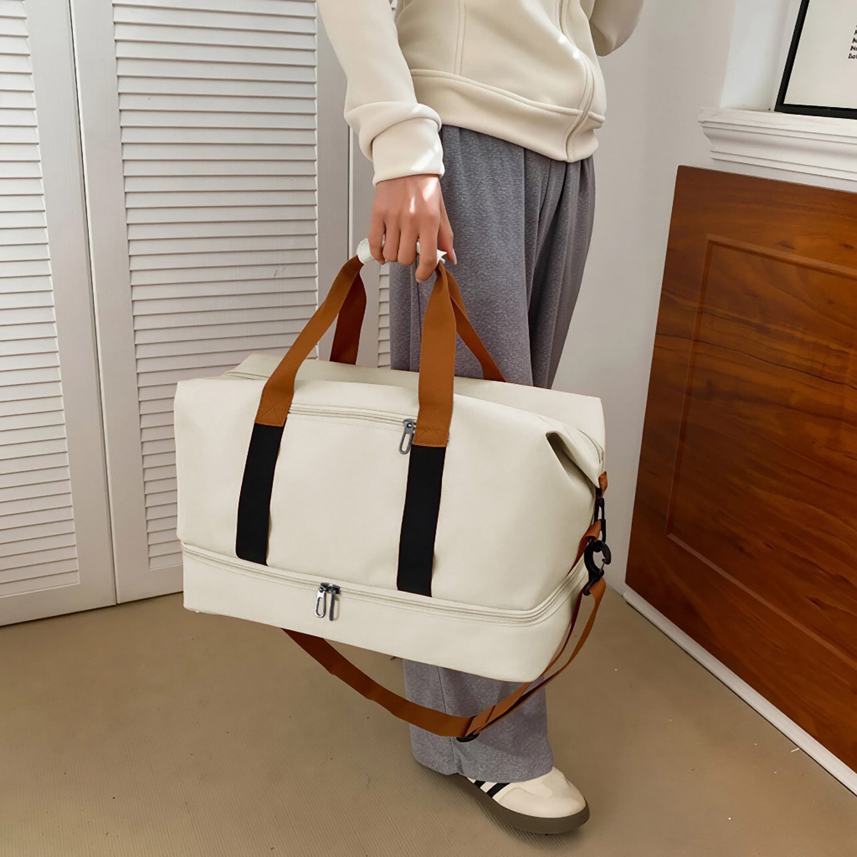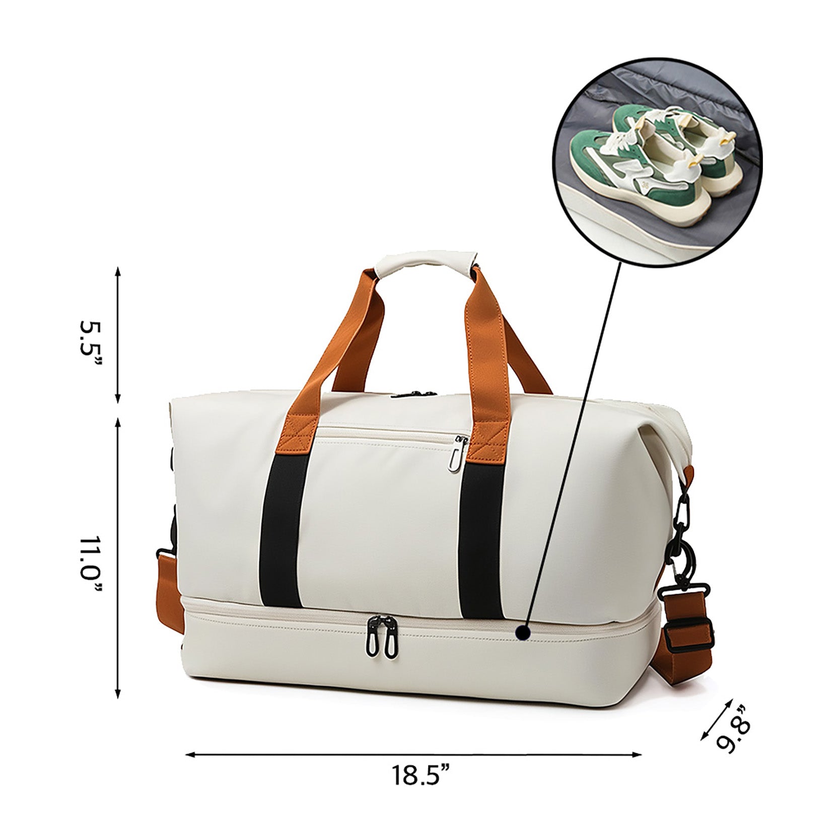 The Weekender Travel Duffle Bag is designed for effortless packing and versatile travel, whether you’re heading out for a weekend getaway, short business trip, or gym session. Measuring 18.5"(L) x 9.8"(W) x 11"(H), it offers generous space without feeling bulky. The top main zipper compartment opens wide for easy packing, while an internal side zipper pocket keeps smaller essentials organized and secure. A convenient front zipper pocket provides quick access to items like travel documents or your phone. The bottom zipper compartment doubles as a shoe or separation pocket, helping keep footwear or used items apart from clean clothes. Designed with a comfortable handle grasp and a 5.5" handle drop, this duffle is easy to carry by hand, while the detachable, adjustable shoulder strap allows for hands-free comfort. Practical, stylish, and travel-ready, this bag is perfect for weekends, carry-on use, and everyday adventures.