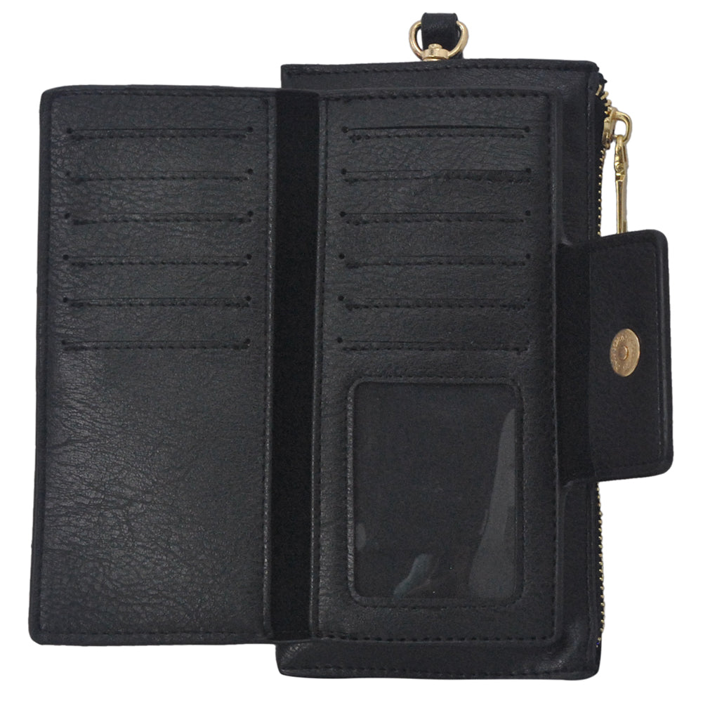 Meet the NGIL Luxe Wristlet Wallet—a refined blend of timeless elegance and everyday practicality. Designed to move effortlessly from errands to evenings out, this versatile piece doubles as a chic mini clutch thanks to its detachable 7.75" wrist strap. Accented with sleek golden hardware and crafted with a soft suede-lined interior, it brings a hint of luxury to your daily routine.
