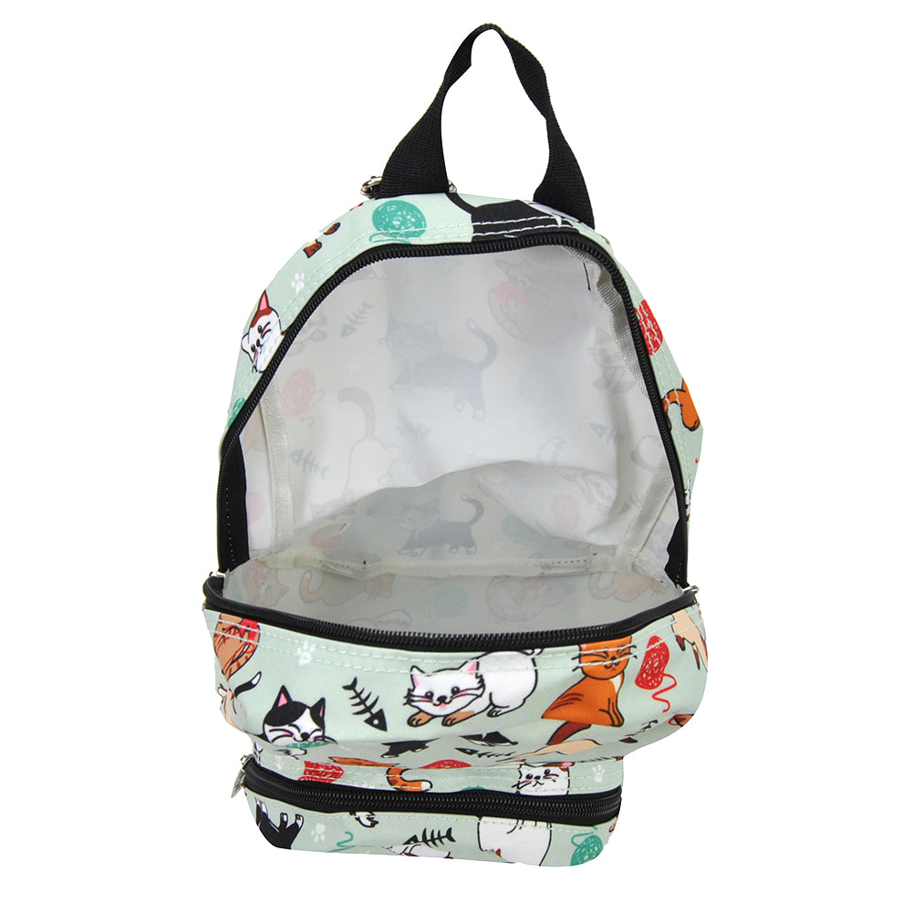 This mini backpack is constructed nylon/ polyester material that can be cleaned easily. It is also water resistant which makes the material long lasting and recyclable. It is the perfect accessory for any occasion! It's small enough to be practical, but big enough to carry all your essentials.