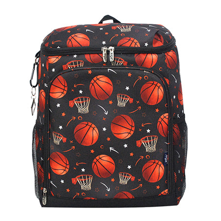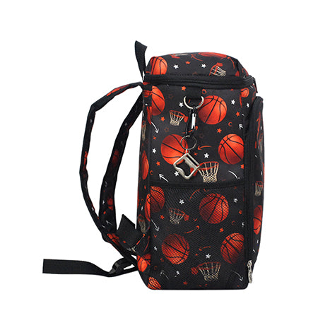 Stay cool courtside with the NGIL Basketball Cooler Backpack! This canvas insulated backpack is your game-day must-have—keeping your snacks and drinks hot or cold whether you're headed to a basketball tournament, school game, or a team road trip. Measuring approx. 10.5"(L) x 7"(W) x 14"(H), it's the perfect size for on-the-go athletes and fans. Features include a front zipper pocket, two mesh side pockets for easy-access drinks, and a top zipper closure to keep items secure. The insulated interior helps regulate temperature (not recommended for direct ice). Built with durable, easy-to-clean canvas and includes a built-in bottle opener for added convenience. This sporty backpack makes a great gift for basketball players, coaches, and fans! Monogrammable, HOWEVER, WE DO NOT MONOGRAM!