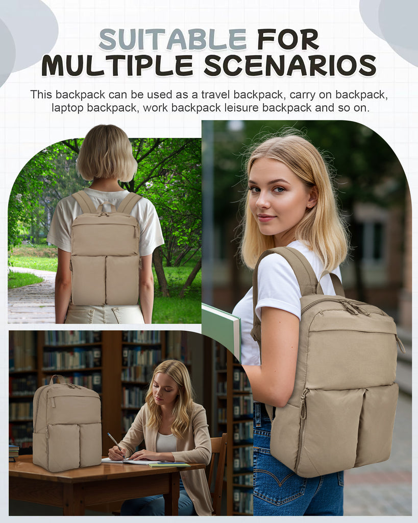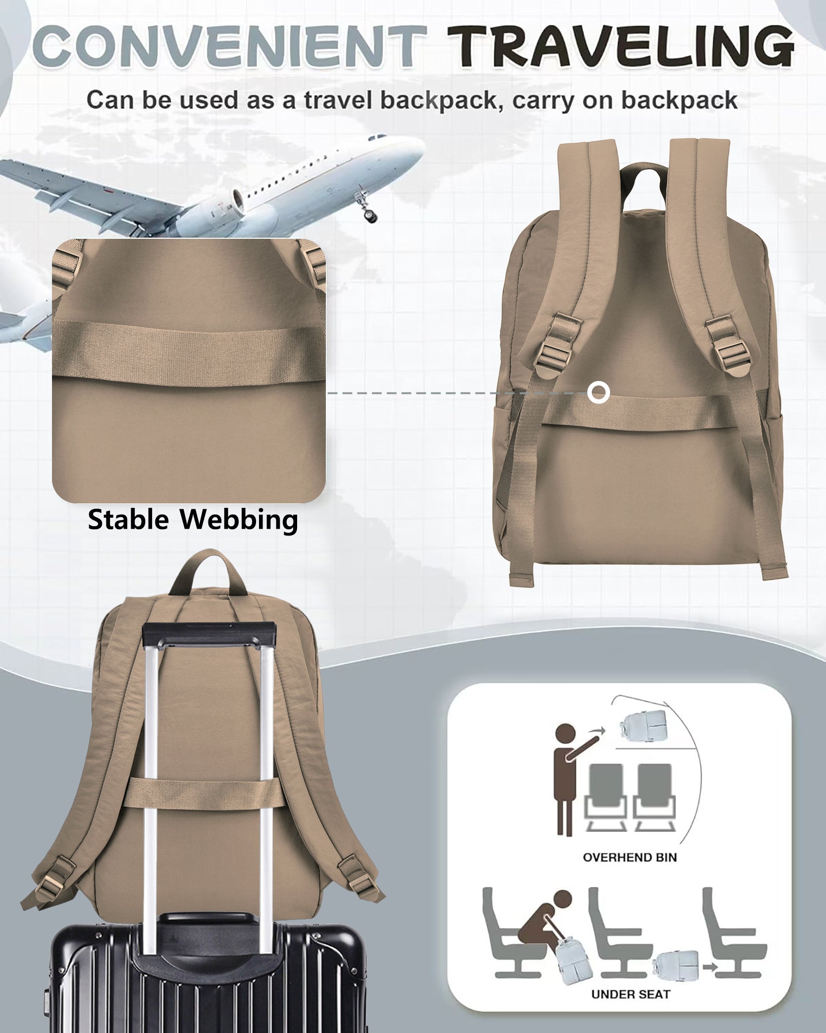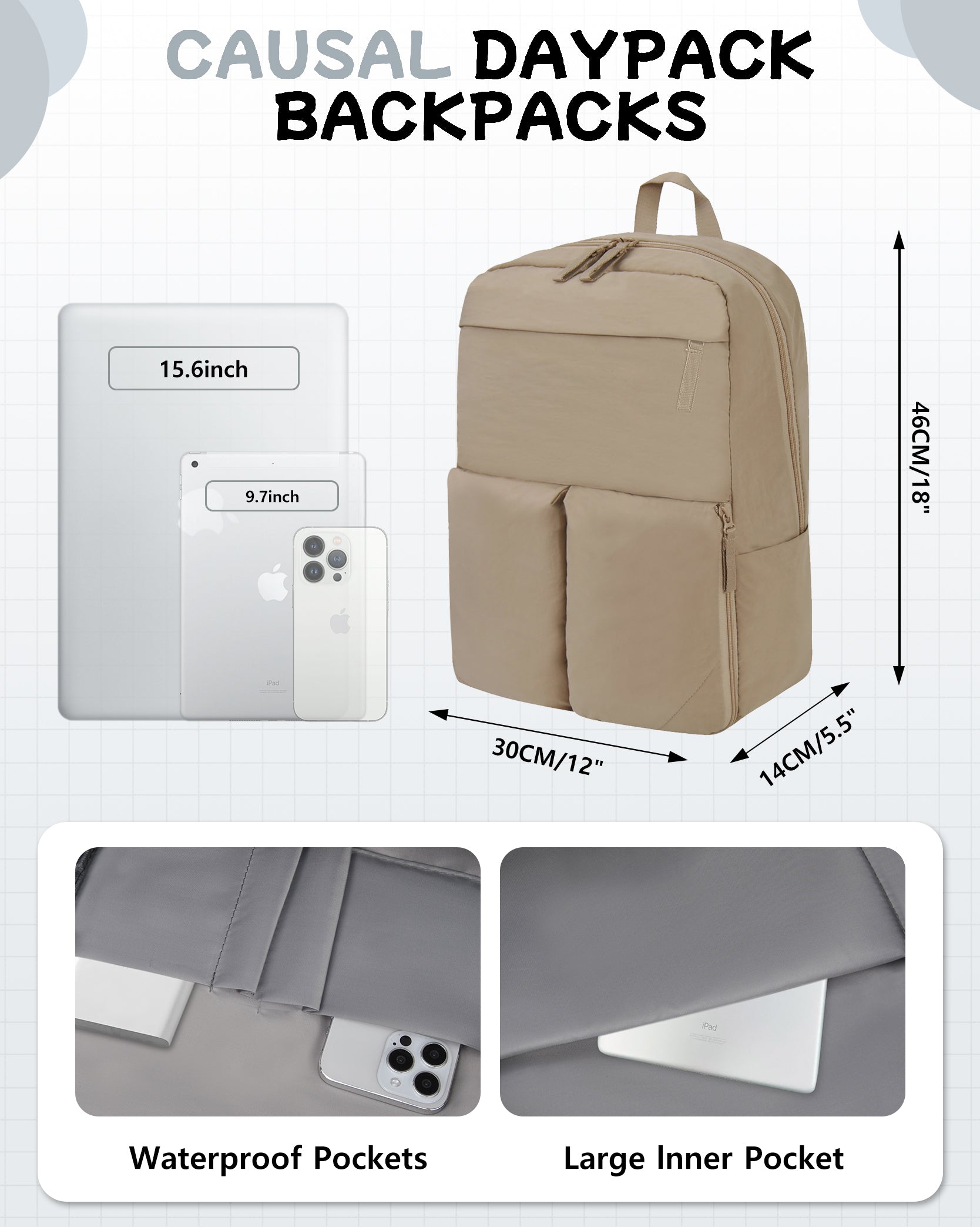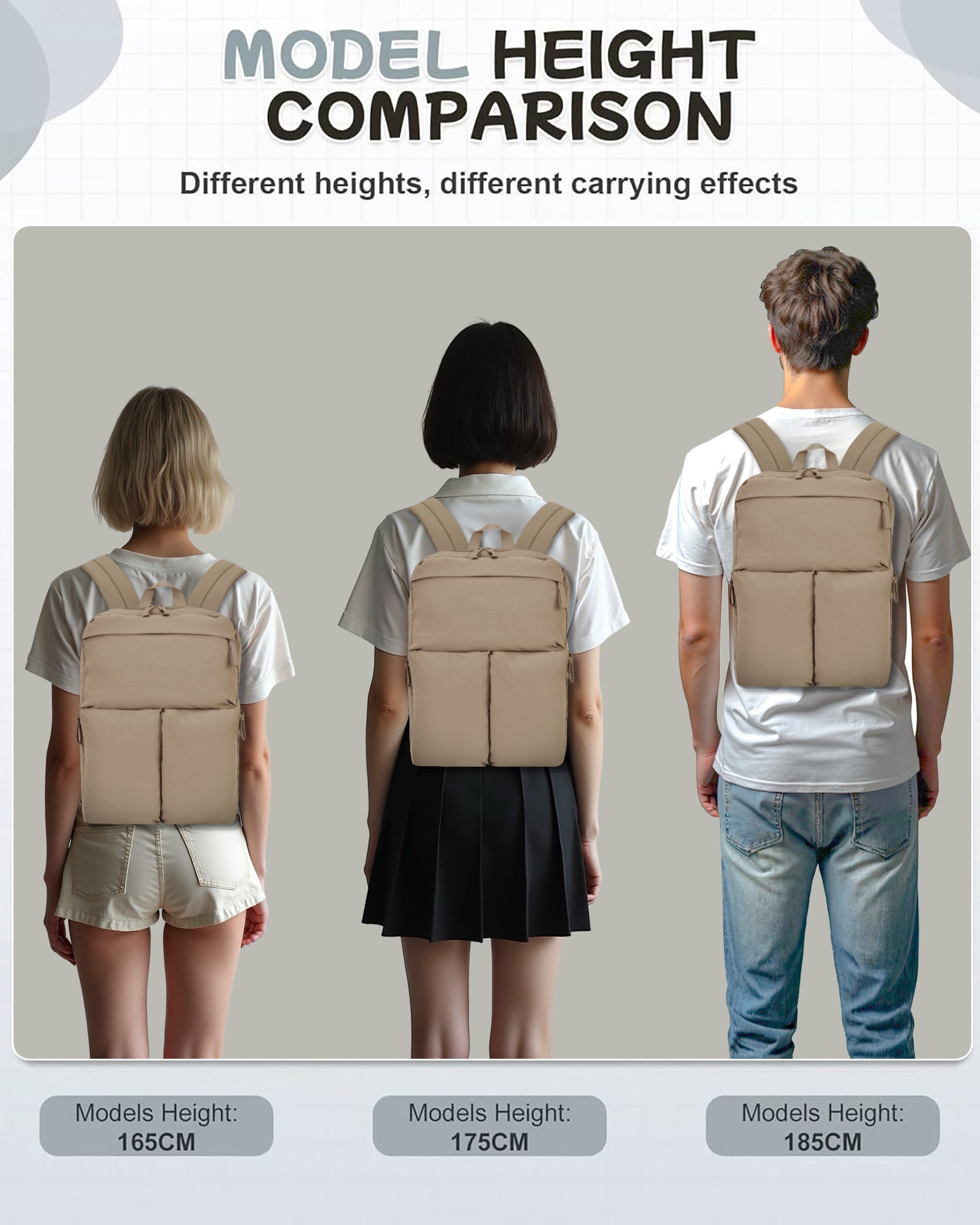 Inside, the main compartment is smartly organized with a dedicated laptop pocket, two medium open side pockets, and two pen or pencil slots so everything has its place, whether you’re heading to work, school, or catching a flight. For added travel ease, the back features a stitched-on strap that allows you to slide the backpack over rolled luggage handles, keeping your load secure and hands-free in the airport or train station. Measuring 11.5" (L) x 6" (W) x 17" (H), this backpack offers the ideal balance between compact size and spacious storage. Stylish yet practical, the Casual Daypack Backpack is versatile enough to be your everyday carry, professional work bag, or reliable travel essential.