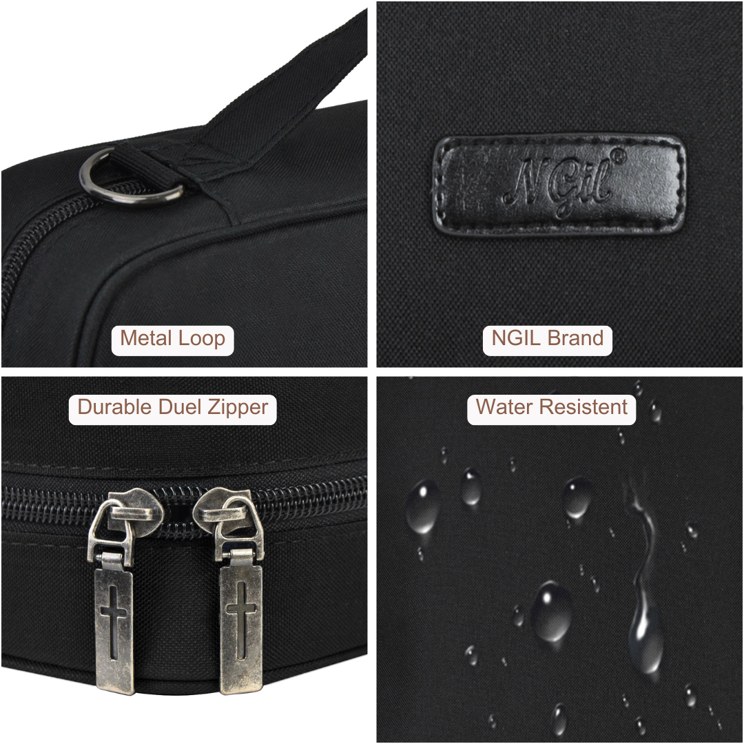 Introducing the NGIL Canvas Bible Cover, a stylish and durable accessory now available at MommyWholesale. Crafted from water-resistant polyester canvas, this cover protects your Bible or iPad with a secure metal zipper and a convenient carry handle for easy portability to church, Bible study, or personal reflection. Inside, multiple pockets keep notes and bookmarks neatly organized. With dimensions of 8"(L) x 2.3"(W) x 11"(H), it accommodates standard or smaller-sized Bibles. Available in various colors, this versatile and easy-to-clean cover appeals to both men and women, making it a timeless addition to any spiritual practice.