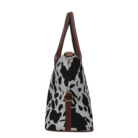 !HOT DEAL! DEAL! Black Cow With Leopard Faux Fur Weekender Bag
