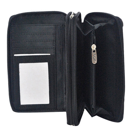 The NGIL Canvas All in One Wallet is the perfect solution for your everyday needs! This spacious wallet is made from canvas and measures approx. 6.5" (L) X 2.25" (W) X 4.25" (H). It features a front magnetic pocket with dimensions of approx. 6.5" x 3.5", allowing you to easily store your cell phone, whether it's an iPhone 7+ or Samsung Galaxy. Additionally, this wallet includes a spacious one zipper compartment which offers two slip pockets and an additional side pocket & zipper coin pocket for extra storage capabilities. The other zippered compartment boasts a large bill pocket, 8 card slips, 1 ID window and 4 open pockets to provide you with room to store your cards and cash securely and organized. This all-in-one wallet is given the final finishing touch by a convenient 55" removable and adjustable strap as well as 5.25" handle drop of its own removable wrist strap enabling you to transport it with ease! Get ready to take on your day with ease using this perfect all-in-one wallet!