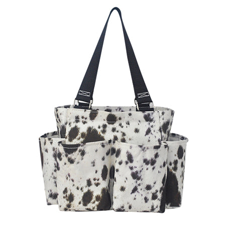 This tote has 4 exterior open pockets which make great diaper bags, traveling bags, cosmetic bags or even picnic bags!