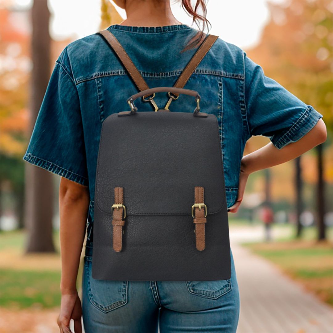 The Faux Leather NGIL Utility Backpack is a stylish and functional accessory designed for everyday use. Made from high-quality faux leather, it combines comfort with durability, featuring magnetic closing clasps and a secure zipper closure. Inside, it offers ample organization with a spacious main compartment and multiple pockets for easy access. The backpack includes a convenient exterior pouch and can be carried easily with a top handle or adjustable straps. A hard base ensures it remains upright and retains its shape, making it a practical choice for daily activities.