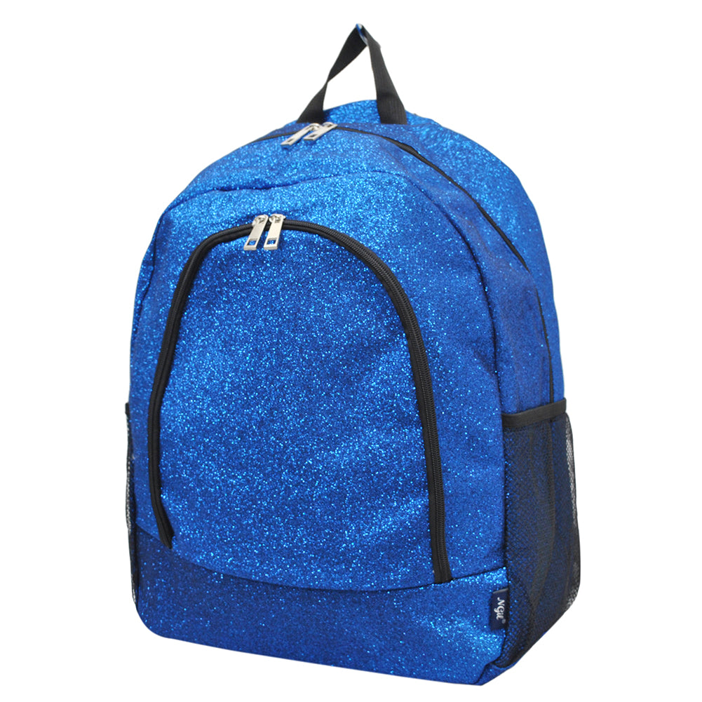 Crafted with glitter-covered fabric, it's both eye-catching and durable—ideal for travel and daily use. The main compartment is fully lined and zips closed to keep uniforms, warmups, and personal items safe. The front zip pocket is also fully lined and includes inner open and cell phone pockets for quick access to small must-haves.