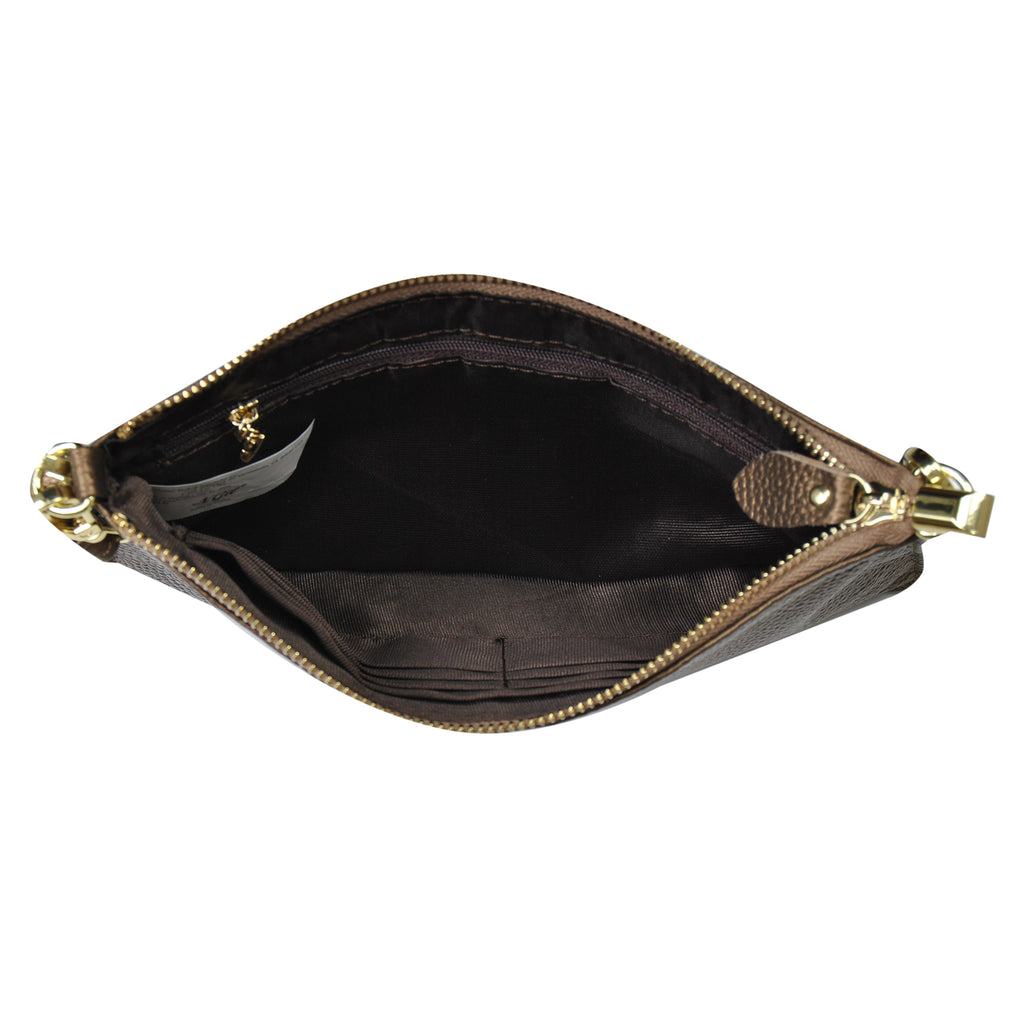 Crafted from luxurious pebble leather and lined with soft fabric, the bag is accented with golden hardware for a touch of refined style. Its unique design allows seamless transition from a crossbody to a wristlet, featuring two removable straps: a 7.5" wrist strap and an adjustable shoulder strap (drop length 15.2" to 28.5"). Lightweight and stylish, it’s ideal for work, casual outings, or vibrant nights out.