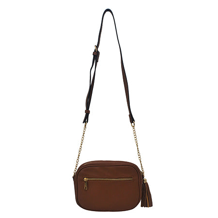 Unleash your inner fashionista with a chic and stylish faux leather crossbody bag. The gold accents add a touch of luxury, while the tassel zipper adds an element of fun. With three zipper closures, you can safely store all your daily essentials. Plus, the adjustable strap ensures a comfortable fit no matter how much you decide to pack. The magnet closure ensures quick and easy access, making it the perfect accessory for those on-the-go. And let's not forget the eye-catching cheetah interior - a subtle yet fierce detail that adds an extra touch of personality. This crossbody bag is the perfect blend of fashion and function for any occasion.