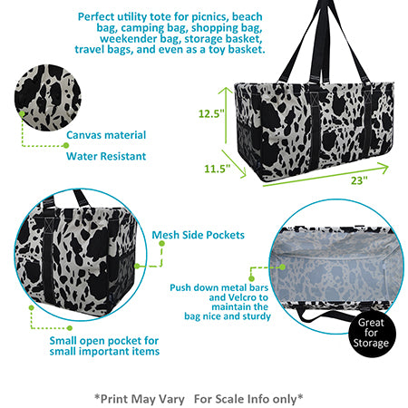 The NGIL Utility Tote Bag is your ultimate carry-all—cute, practical, and ready for any occasion. Crafted from durable, water-resistant canvas, this large tote is built to handle busy days and outdoor adventures alike. Measuring approximately 23"L x 11.5"D x 12.5"H, it’s spacious enough for beach trips, picnics, camping, shopping, or even organizing toys and supplies. The collapsible design with push-down metal bars and Velcro sides keeps it sturdy when in use and easy to store when not. An open top allows quick access to towels, groceries, or essentials, while a mesh pocket and small open pocket keep smaller items handy. Finished with double handles that drop about 13" for comfortable carrying, this tote combines functionality with effortless style. It’s a thoughtful and versatile gift for friends, teachers, and family alike.
