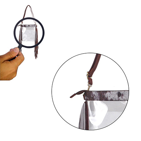 Introducing the NGIL Clear Fringe Bag, a stunning accessory that seamlessly blends durability with style. Crafted from thick PVC plastic, this shoulder bag ensures longevity while its faux leather trim and flowy long fringe strips exude a chic western charm. The addition of golden metal accents elevates its aesthetic, adding a touch of luxury to its rugged appeal. The bag features a convenient top zipper closure to keep your belongings secure. It also comes with a detachable faux leather strap, approximately 53.5 inches in length, providing versatility in carrying. When attached, it offers a comfortable 14.5-inch handle drop, allowing you to wear it as a shoulder bag or carry it by hand. With dimensions of 10.25 inches in length, 1.5 inches in width, and 10.5 inches in height, this bag offers ample space for your essentials without compromising on style. Whether you're heading to a festival, a concert, or simply want to add a western-inspired flair to your outfit, the NGIL Clear Fringe Bag is the perfect choice!