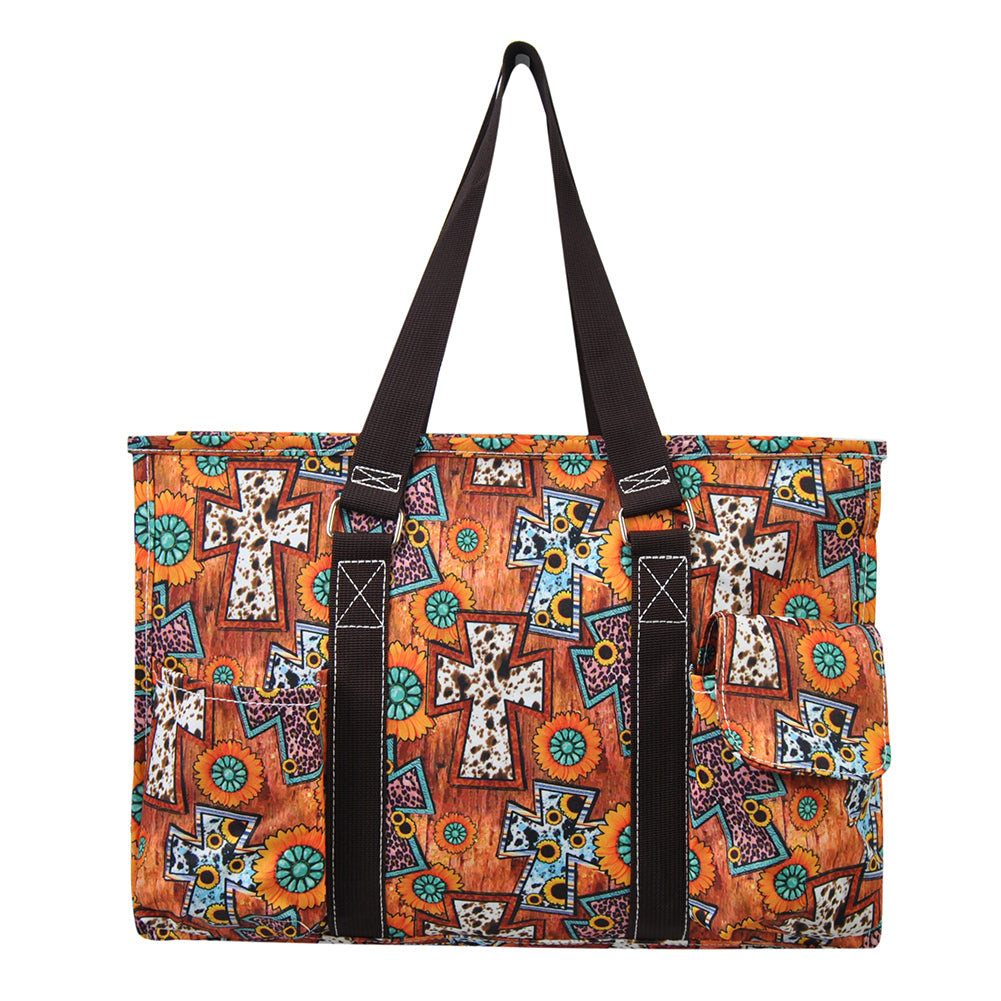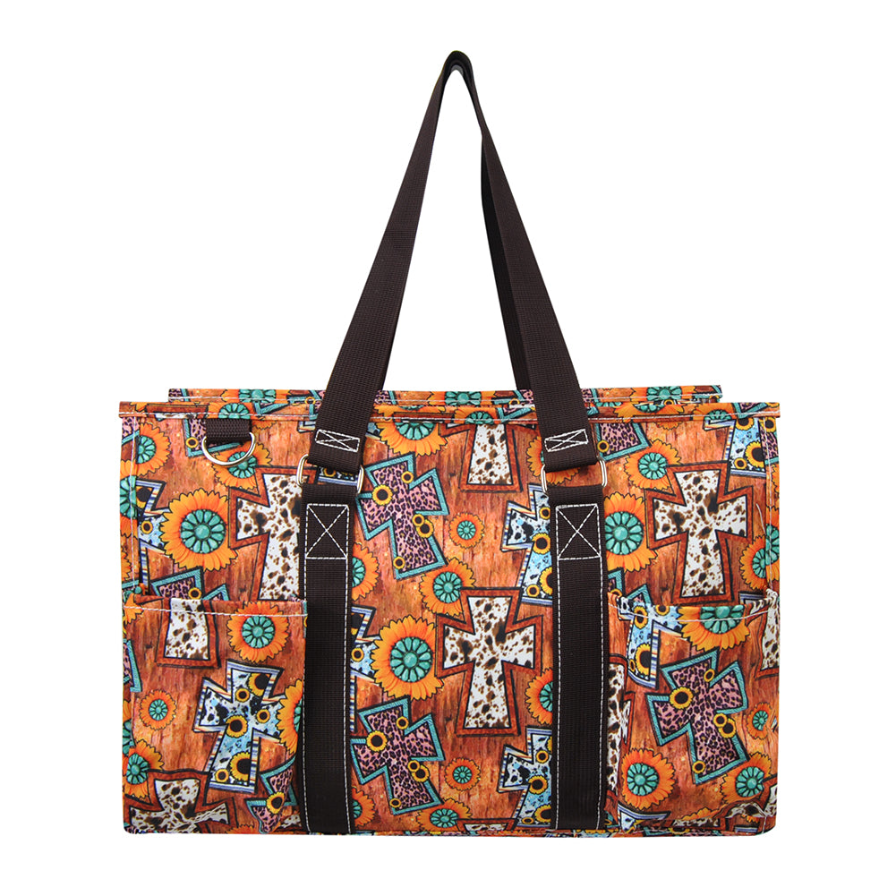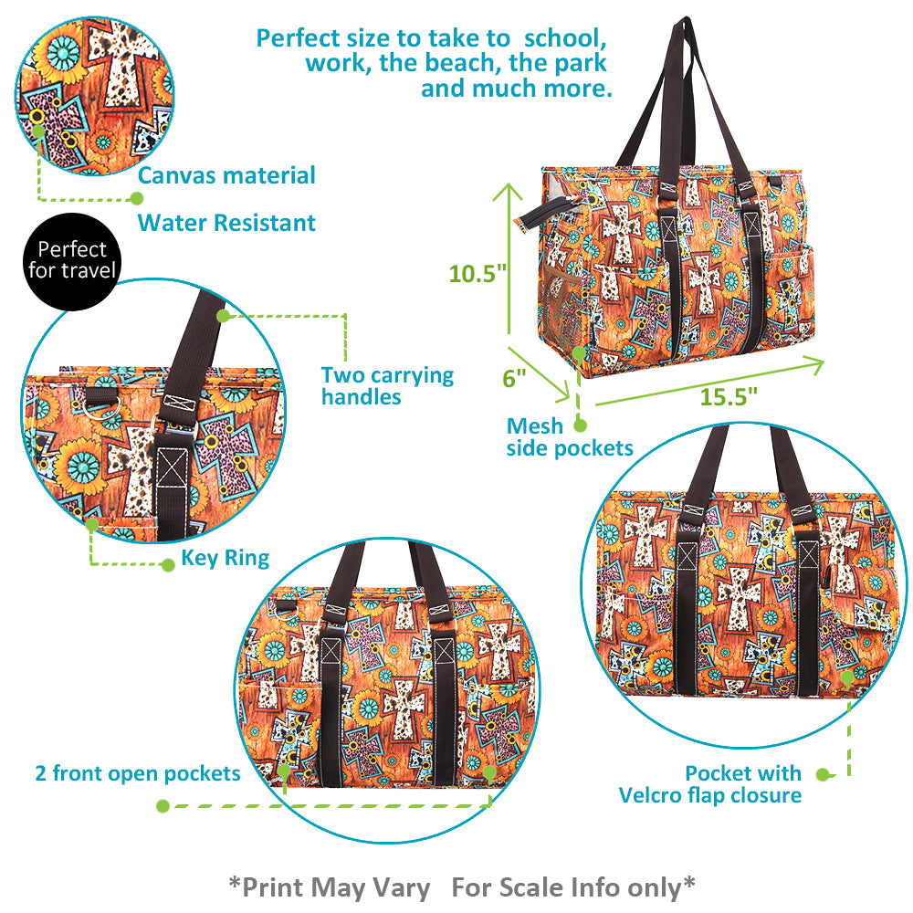 Size of the bag is approx.: 15.5"L) X 6"(W) X 10.5 "H). This tote bag has plenty of space and can be used as a diaper bag, shopping bag, travel bag, grocery bag, gym bag, and more!
