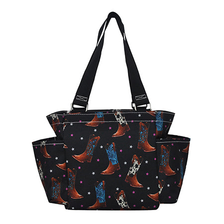 This tote has 4 exterior open pockets which make great diaper bags, traveling bags, cosmetic bags or even picnic bags!