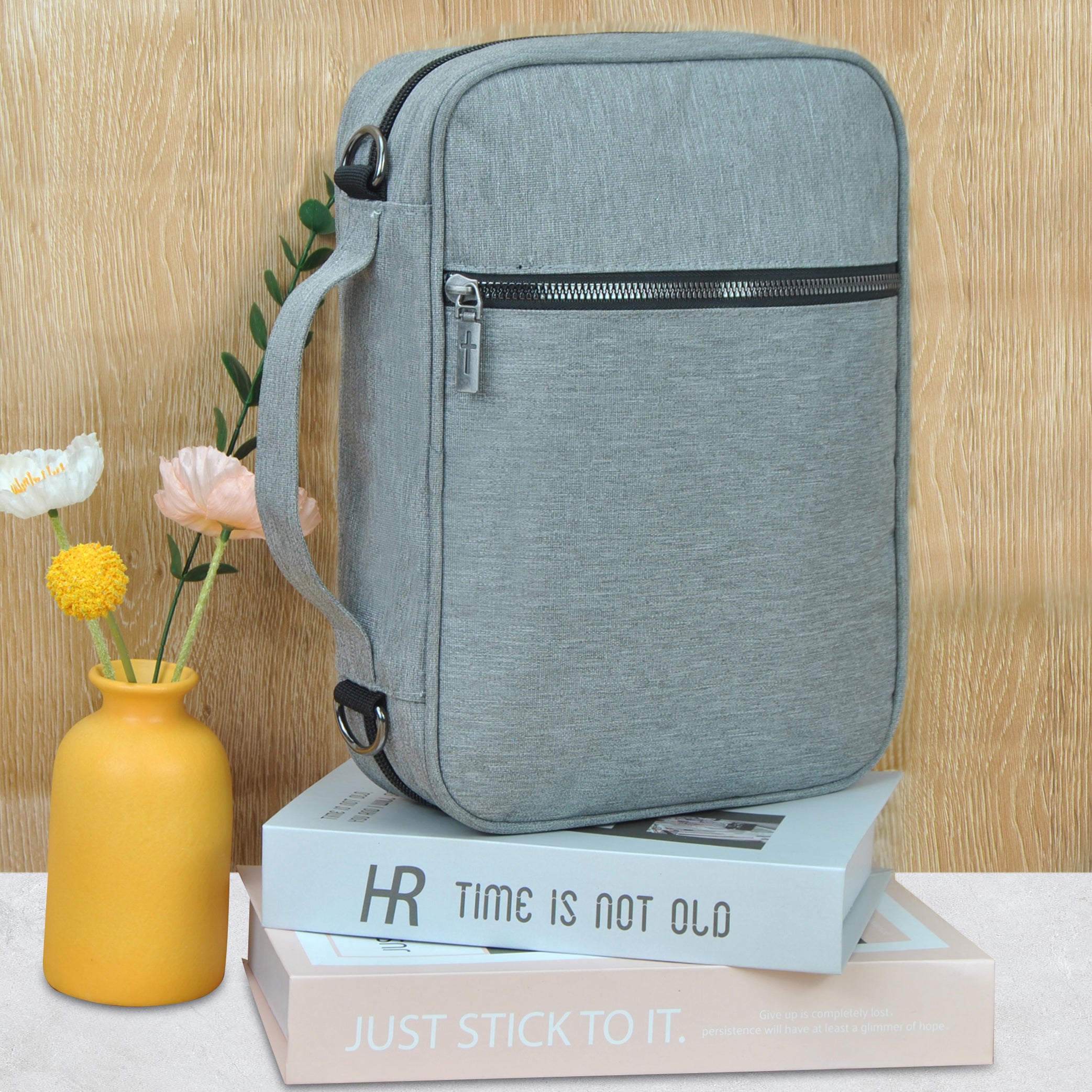 Introducing the NGIL Canvas Bible Cover, a stylish and durable accessory now available at MommyWholesale. Crafted from water-resistant polyester canvas, this cover protects your Bible or iPad with a secure metal zipper and a convenient carry handle for easy portability to church, Bible study, or personal reflection. Inside, multiple pockets keep notes and bookmarks neatly organized. With dimensions of 8"(L) x 2.3"(W) x 11"(H), it accommodates standard or smaller-sized Bibles. Available in various colors, this versatile and easy-to-clean cover appeals to both men and women, making it a timeless addition to any spiritual practice.