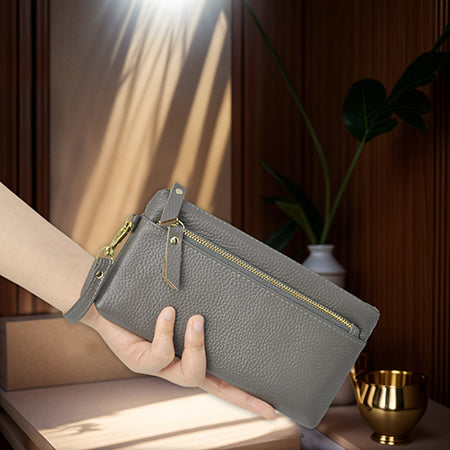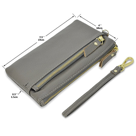 Crafted from high-quality genuine leather, this handbag offers a soft, luxurious feel that exudes sophistication. The meticulous craftsmanship ensures durability, allowing this wristlet to be a timeless addition to your collection.