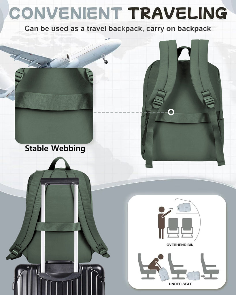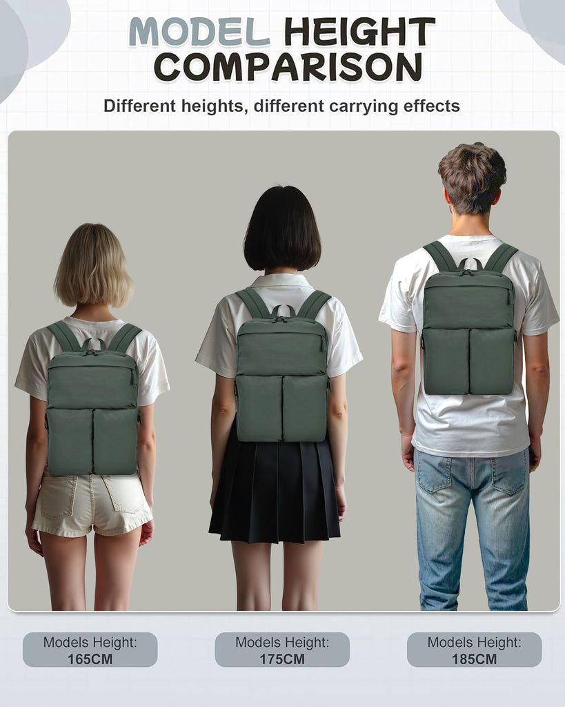 Inside, the main compartment is smartly organized with a dedicated laptop pocket, two medium open side pockets, and two pen or pencil slots so everything has its place, whether you’re heading to work, school, or catching a flight. For added travel ease, the back features a stitched-on strap that allows you to slide the backpack over rolled luggage handles, keeping your load secure and hands-free in the airport or train station. Measuring 11.5" (L) x 6" (W) x 17" (H), this backpack offers the ideal balance between compact size and spacious storage. Stylish yet practical, the Casual Daypack Backpack is versatile enough to be your everyday carry, professional work bag, or reliable travel essential.
