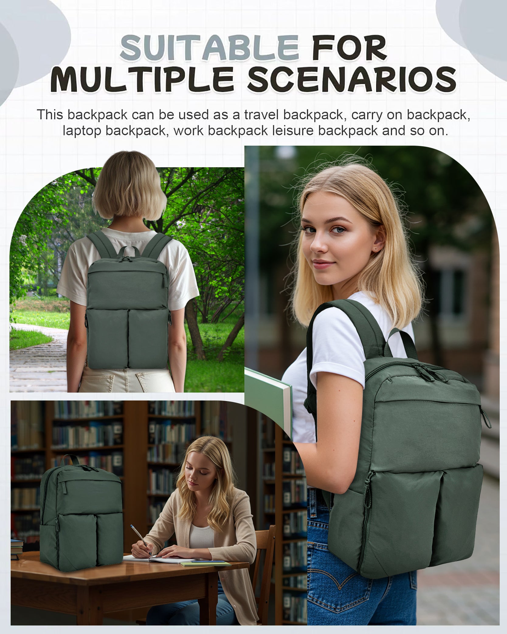 Green Casual Daypack Backpack