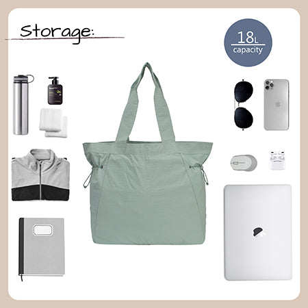 With a generous 18L capacity, this bag effortlessly accommodates all your essentials—from your iPad and wallet to sportswear and magazines. The spacious main compartment and interior pocket ensure easy organization, while the exterior zippered pocket provides quick access to smaller items.