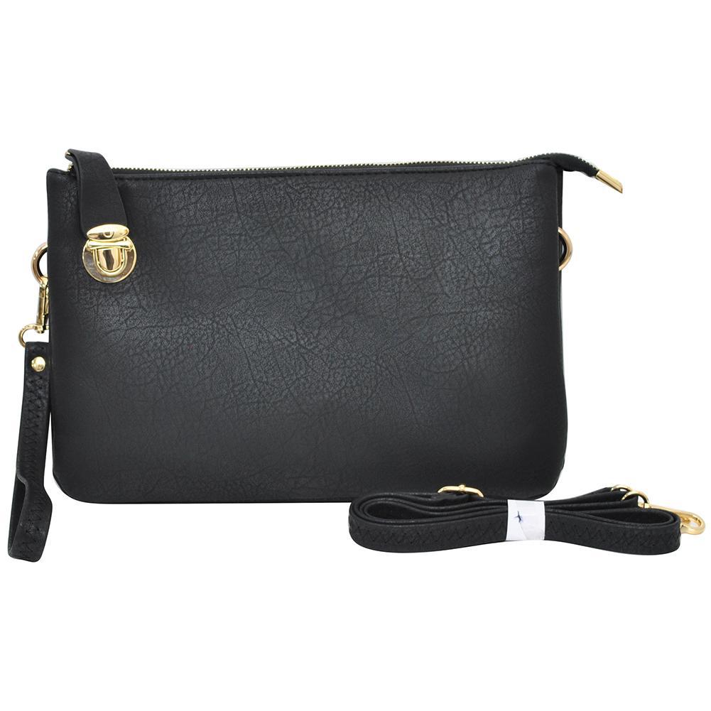 Designed for versatility, it comes with both a removable wristlet strap and a removable shoulder strap (with a 25½" handle drop) so you can wear it your way — as a crossbody, shoulder bag, or clutch. The interior includes two open pockets, one zipper pocket, and one additional open pocket for easy organization. Accented with gold-tone hardware, this bag adds a refined touch to both casual and formal outfits, making it the perfect companion for brunches, date nights, or daily errands.