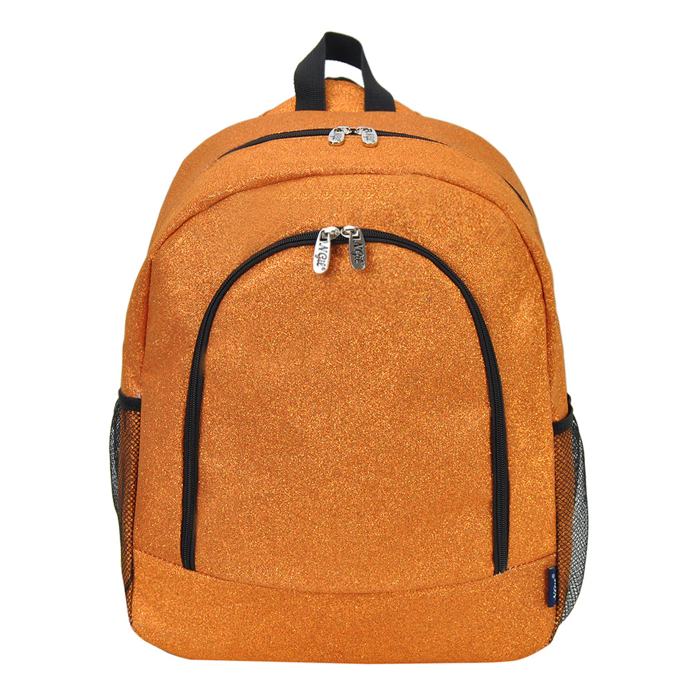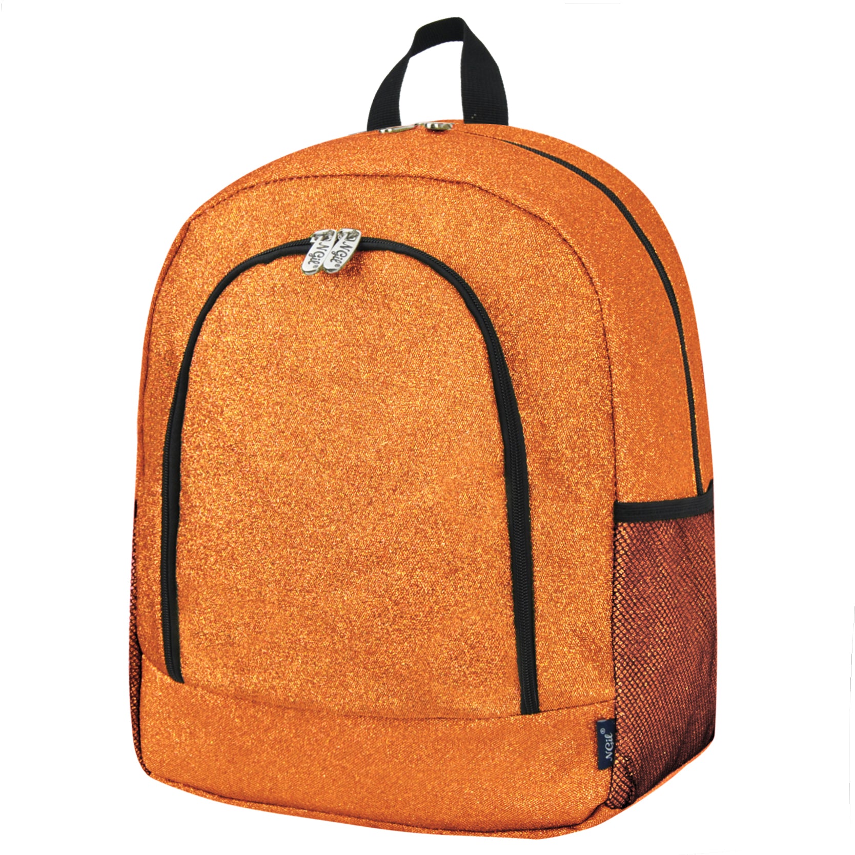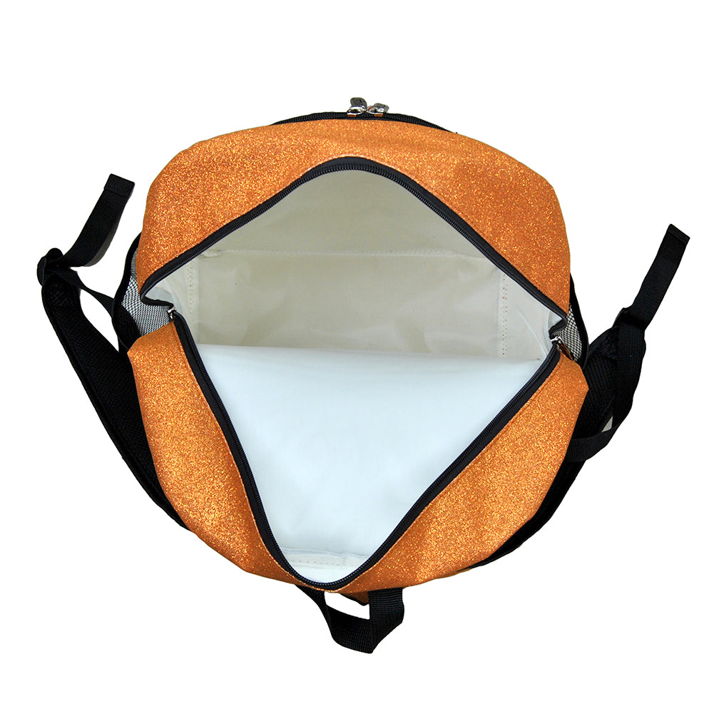 Crafted with glitter-covered fabric, it's both eye-catching and durable—ideal for travel and daily use. The main compartment is fully lined and zips closed to keep uniforms, warmups, and personal items safe. The front zip pocket is also fully lined and includes inner open and cell phone pockets for quick access to small must-haves.