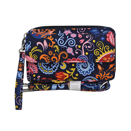 The NGIL Canvas All in One Wallet is the perfect solution for your everyday needs! This spacious wallet is made from canvas and measures approx. 6.5" (L) X 2.25" (W) X 4.25" (H). It features a front magnetic pocket with dimensions of approx. 6.5" x 3.5", allowing you to easily store your cell phone, whether it's an iPhone 7+ or Samsung Galaxy. Additionally, this wallet includes a spacious one zipper compartment which offers two slip pockets and an additional side pocket & zipper coin pocket for extra storage capabilities. The other zippered compartment boasts a large bill pocket, 8 card slips, 1 ID window and 4 open pockets to provide you with room to store your cards and cash securely and organized. This all-in-one wallet is given the final finishing touch by a convenient 55" removable and adjustable strap as well as 5.25" handle drop of its own removable wrist strap enabling you to transport it with ease! Get ready to take on your day with ease using this perfect all-in-one wallet!