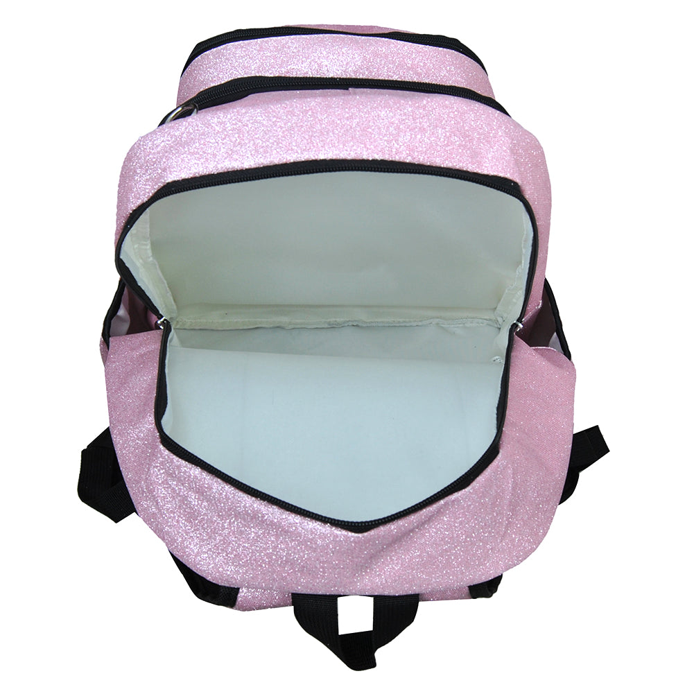 Made with durable glitter canvas, this backpack combines fashion with function. The sparkling exterior stands out at every event, while side pockets offer quick access to items like water bottles, snacks, or small gear.