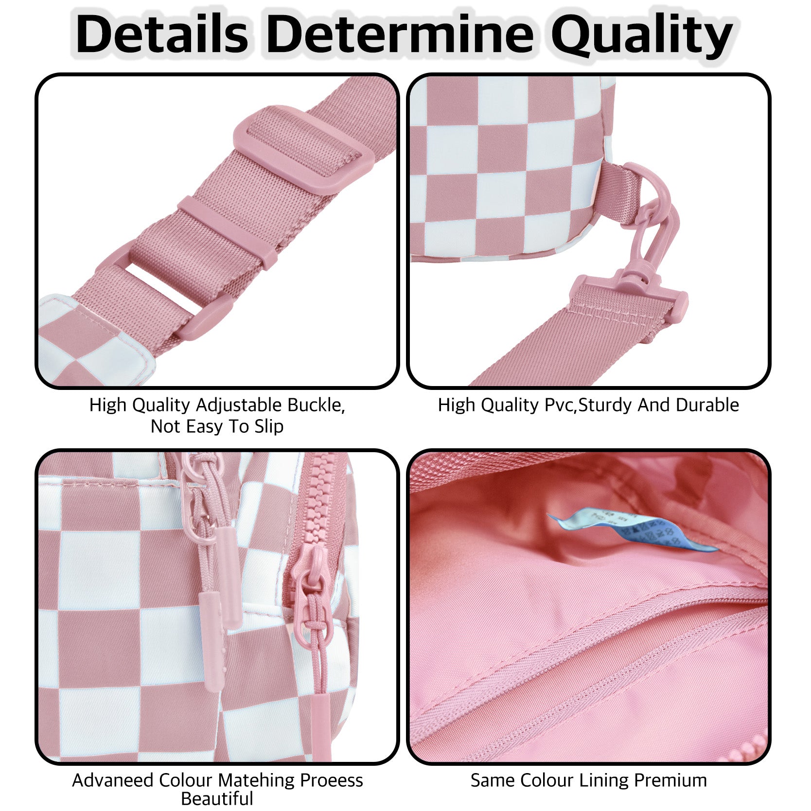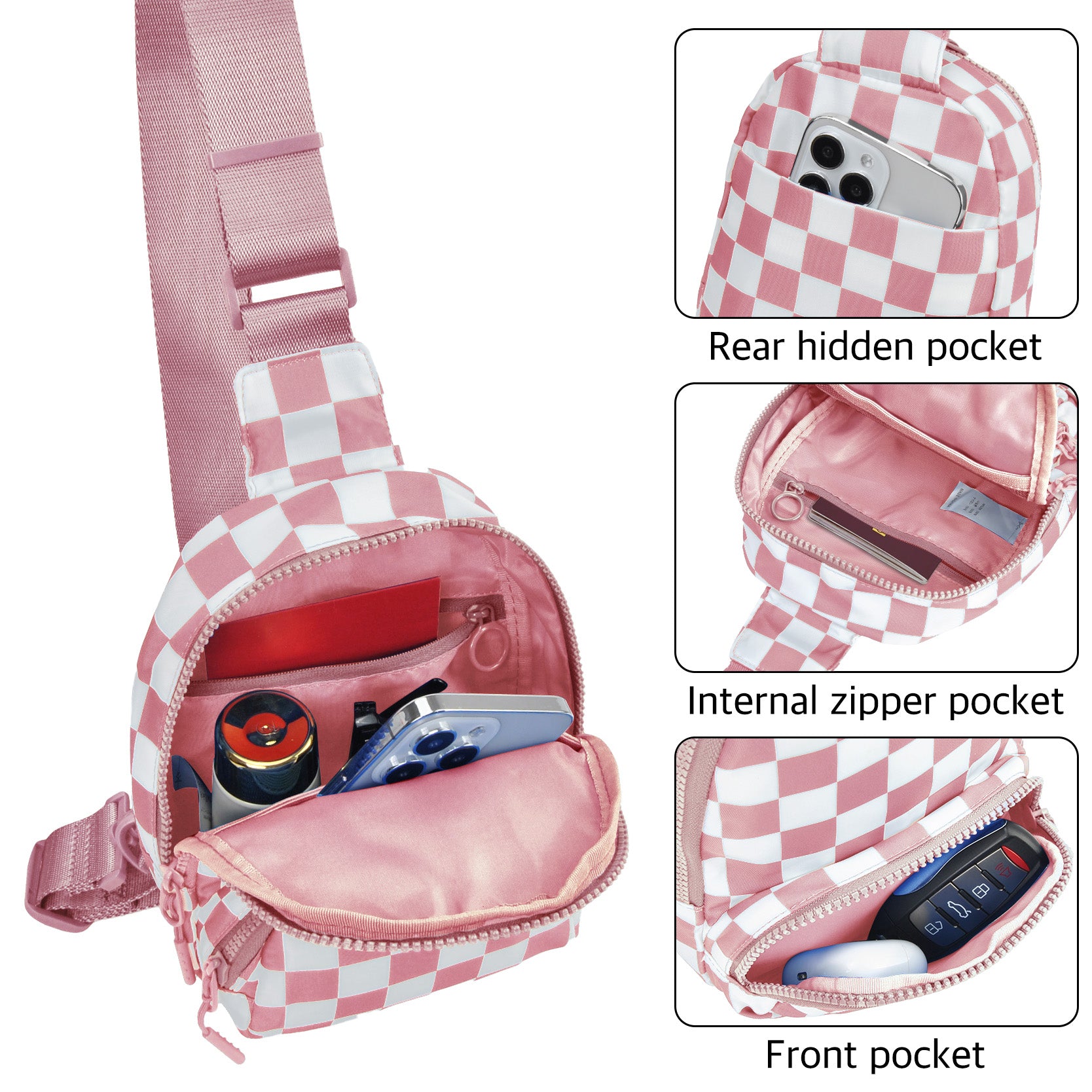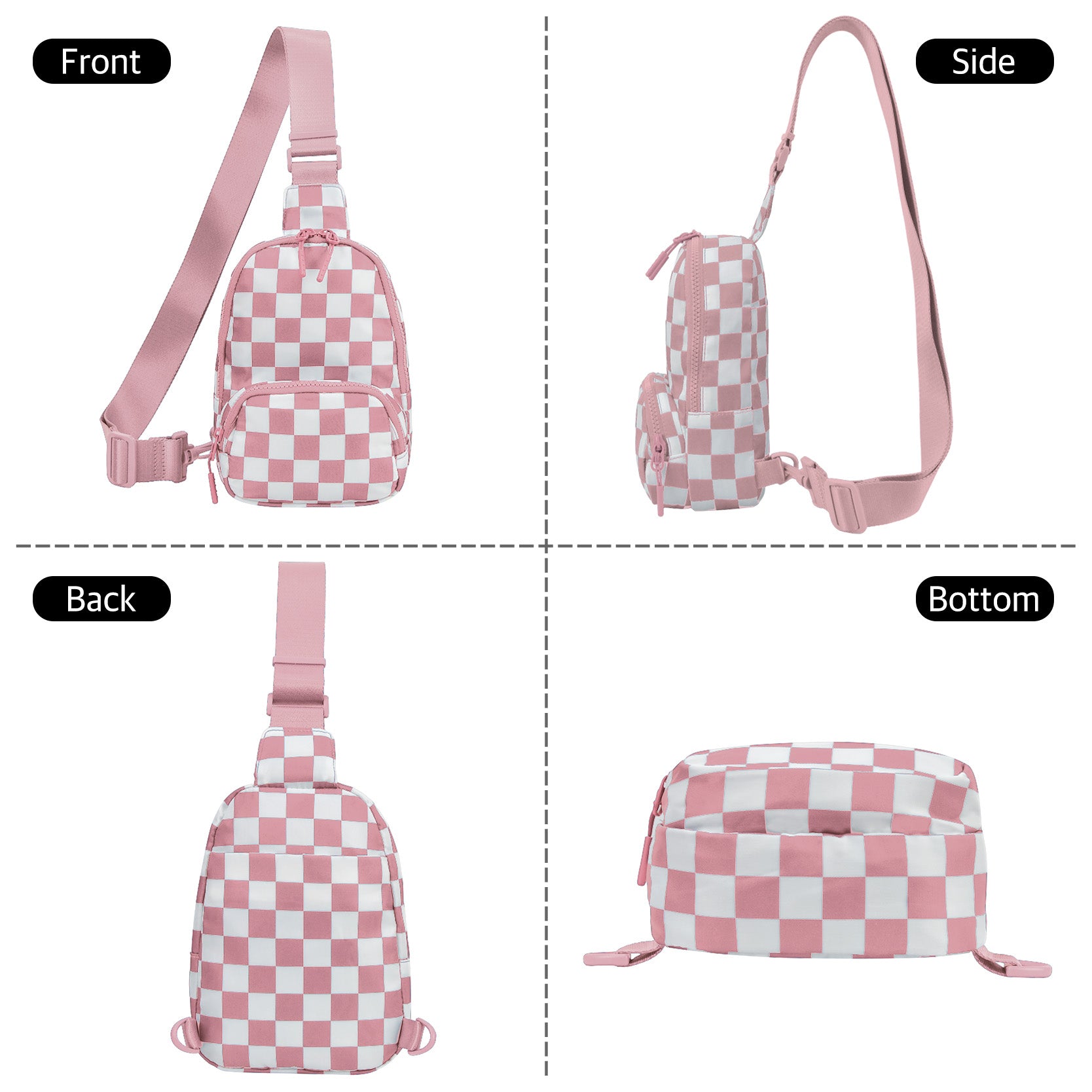 Pink Small Checkered Sling Fanny Pack