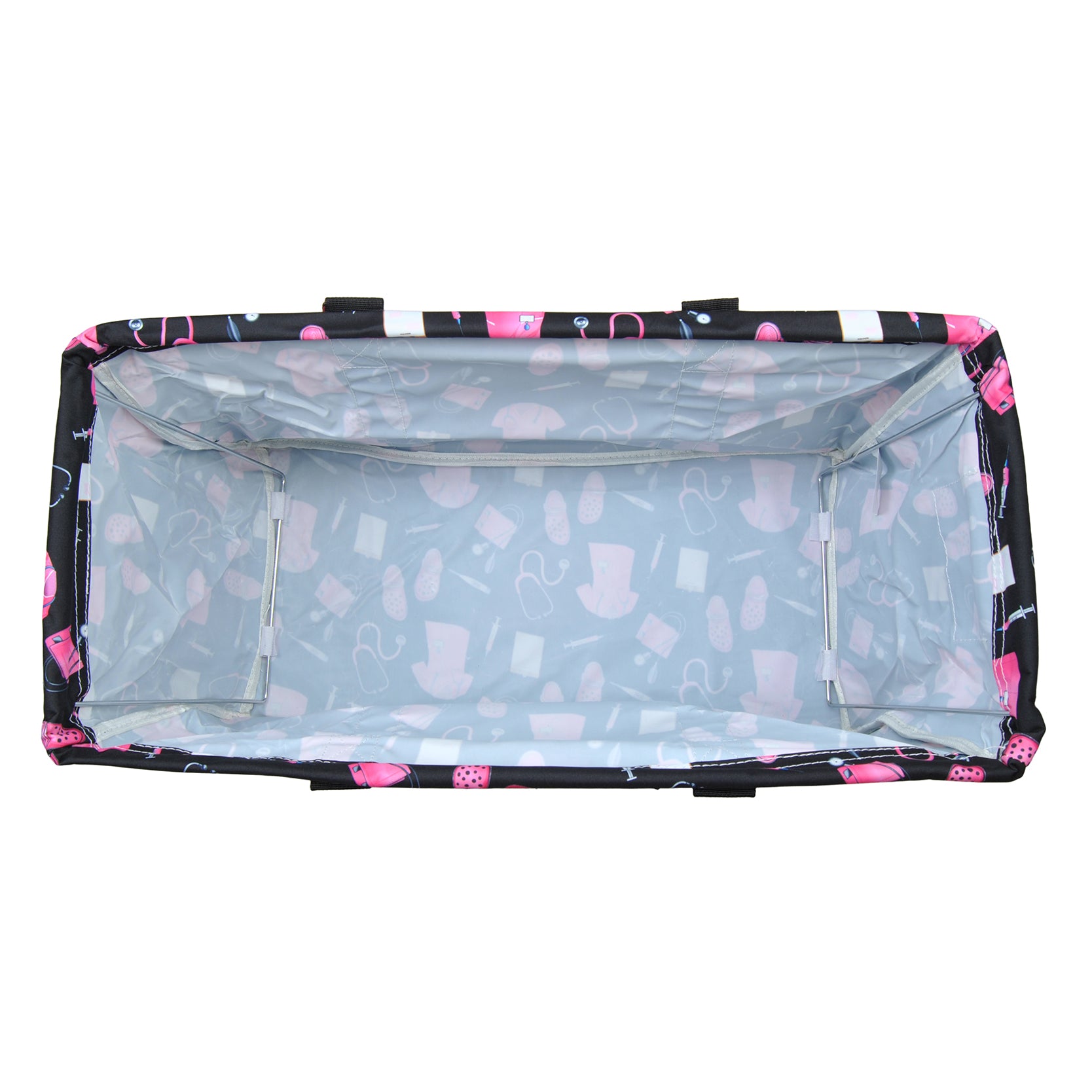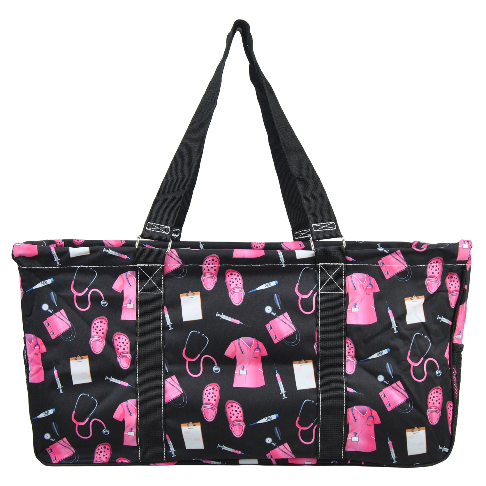 The open top allows for easy access, while the mesh pocket and small open pocket help keep essentials like stethoscopes, pens, or snacks within reach. Double handles with a 13" drop make it easy to carry from home to hospital or classroom.