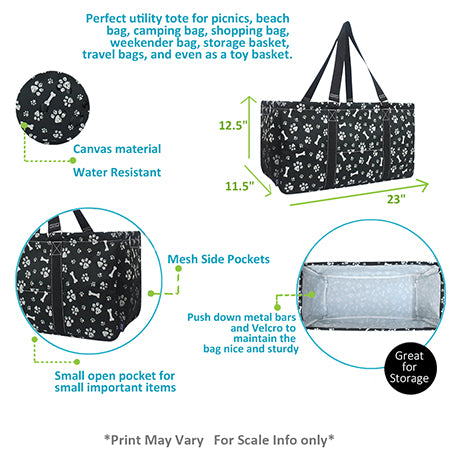 The NGIL Utility Tote Bag is your ultimate carry-all—cute, practical, and ready for any occasion. Crafted from durable, water-resistant canvas, this large tote is built to handle busy days and outdoor adventures alike. Measuring approximately 23"L x 11.5"D x 12.5"H, it’s spacious enough for beach trips, picnics, camping, shopping, or even organizing toys and supplies. The collapsible design with push-down metal bars and Velcro sides keeps it sturdy when in use and easy to store when not. An open top allows quick access to towels, groceries, or essentials, while a mesh pocket and small open pocket keep smaller items handy. Finished with double handles that drop about 13" for comfortable carrying, this tote combines functionality with effortless style. It’s a thoughtful and versatile gift for friends, teachers, and family alike.