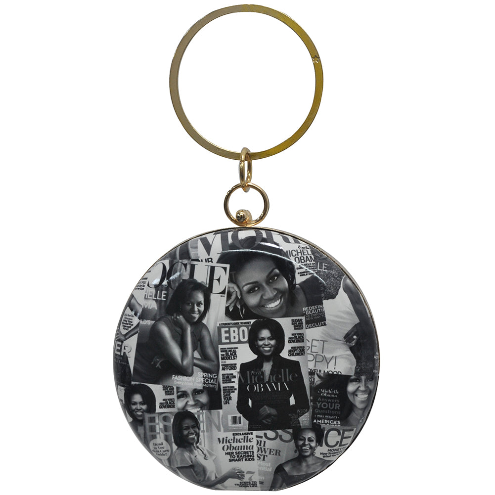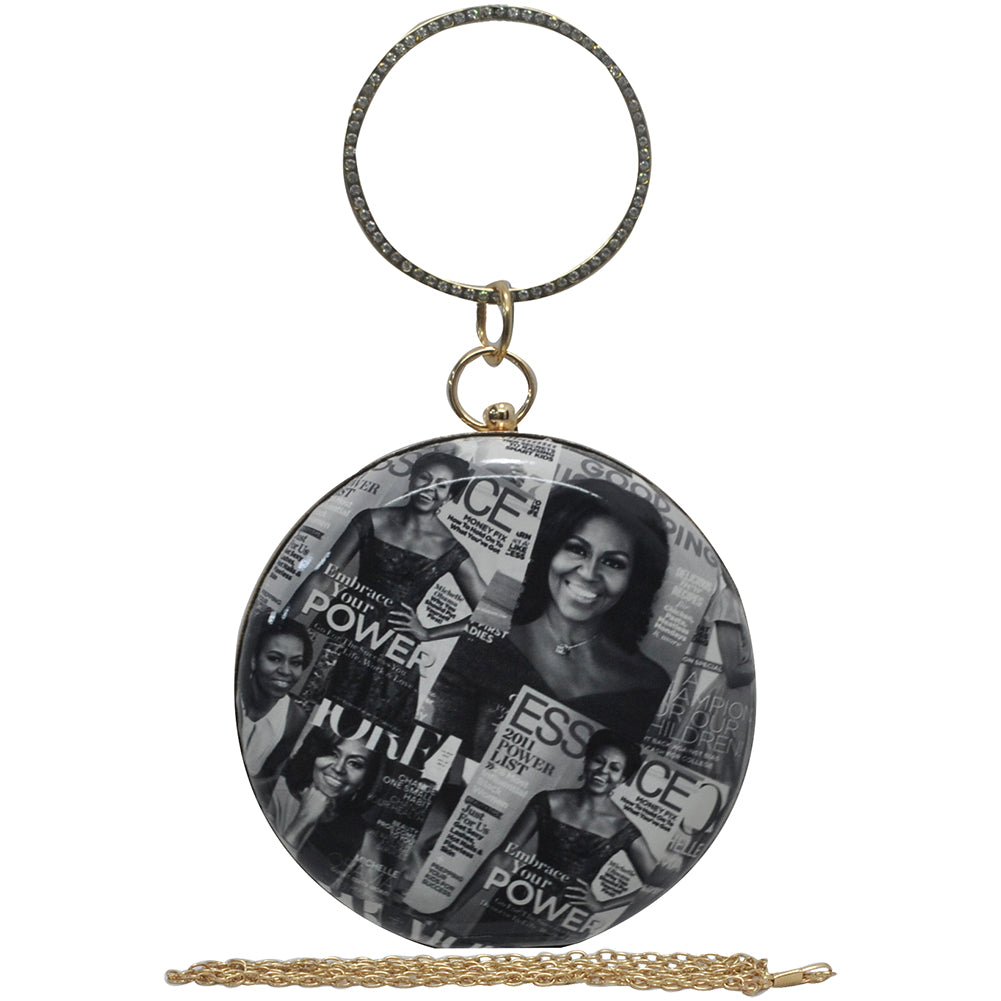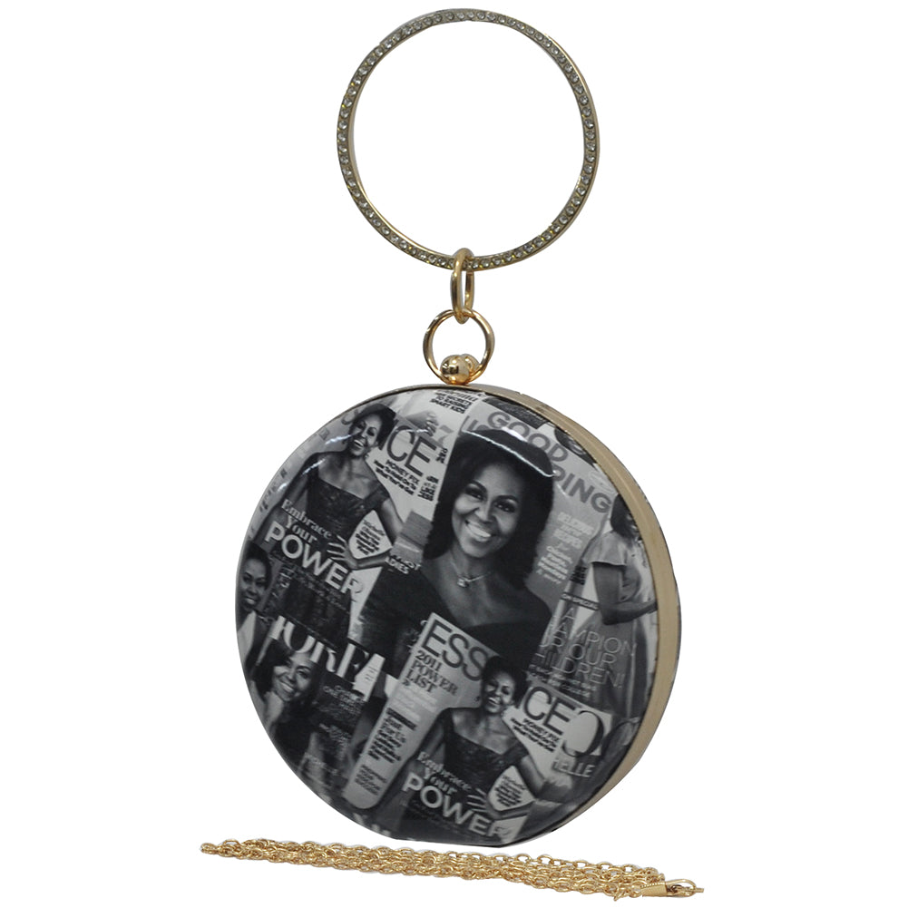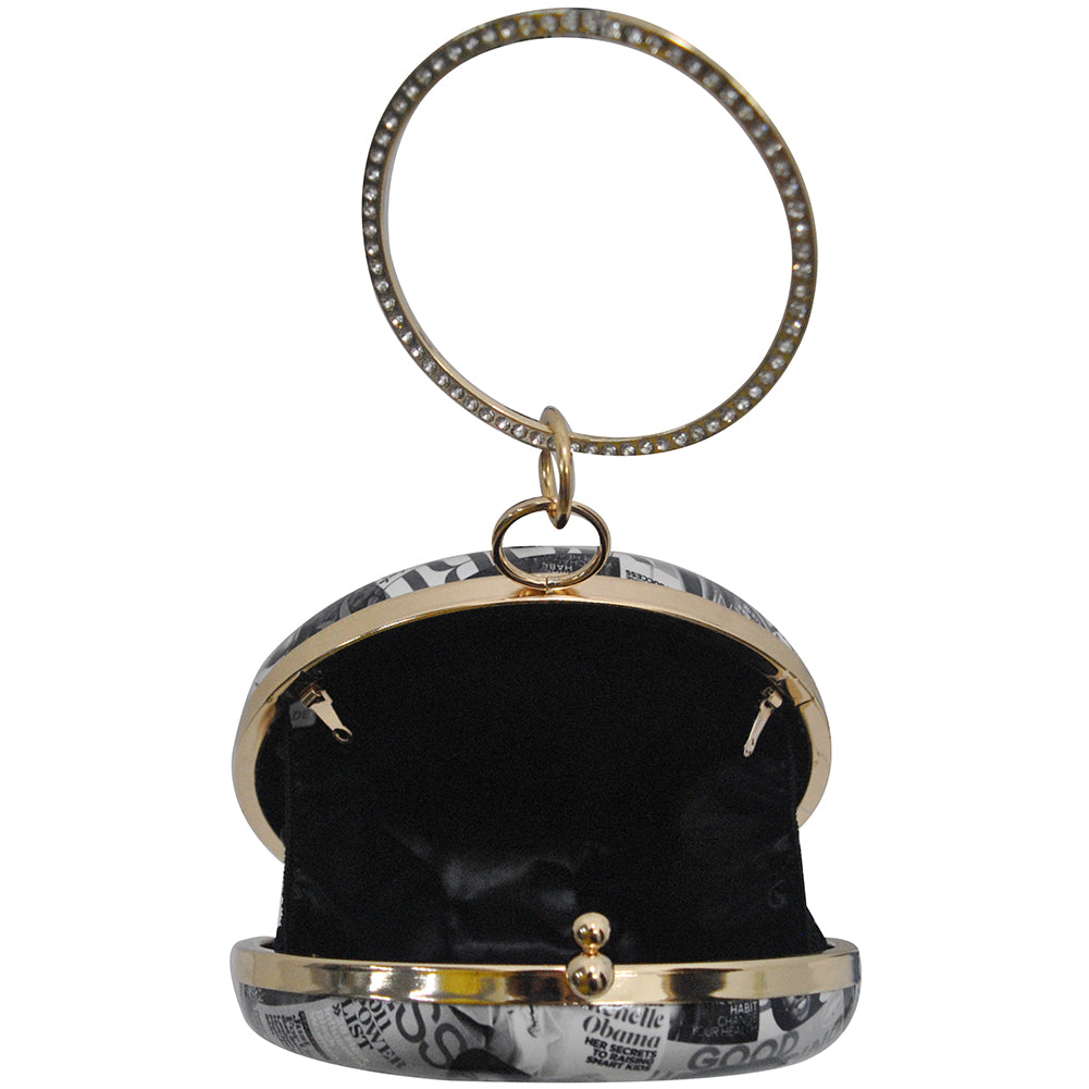 Elevate your evening look with the Circle Clutch Purse, a striking accessory designed to shine. This elegant circular purse features a radiant rhinestone-studded handle that adds instant glam while offering a comfortable wrist carry. Crafted with golden accent metal and a classic kiss-clasp closure, it opens to reveal a soft black canvas-lined interior perfect for storing small essentials like keys, cards, and lipstick. Measuring 6.2" in length with a sleek 2" width and a 19.5" circumference, it’s compact yet eye-catching. Each clutch includes replacement rhinestones to ensure lasting sparkle. Modern, chic, and effortlessly stylish, this round clutch is the perfect finishing touch for special occasions, nights out, and statement-making moments.