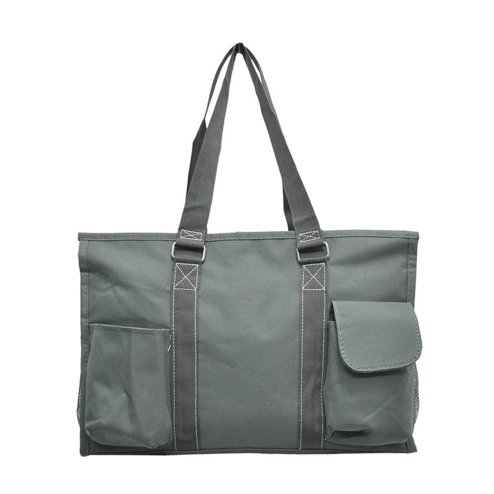 Perfect to keep things organized: includes 2 front open pockets, 2 rear pockets with one Velcro flap closure. It even comes with side mesh pockets on both sides for water bottles and a mini side pocket for small items. Two carrying handles which drop approx.: 9 1/2" making it really comfortable to take with you anywhere.