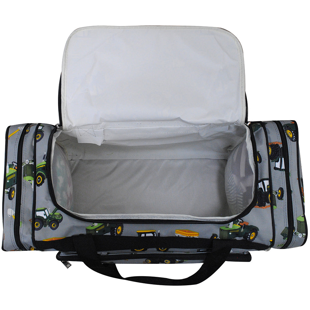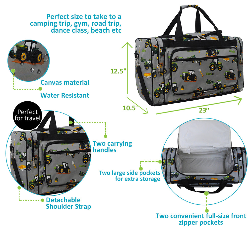 The duffle bag is made from canvas material that is durable and could withstand wear and tear. Measures to 23" x 10.5" x 12.5", so it's spacious enough to fit everything you need. Also features a zip-top closure keeps everything inside the duffle bag so you don't have to worry about anything falling out!