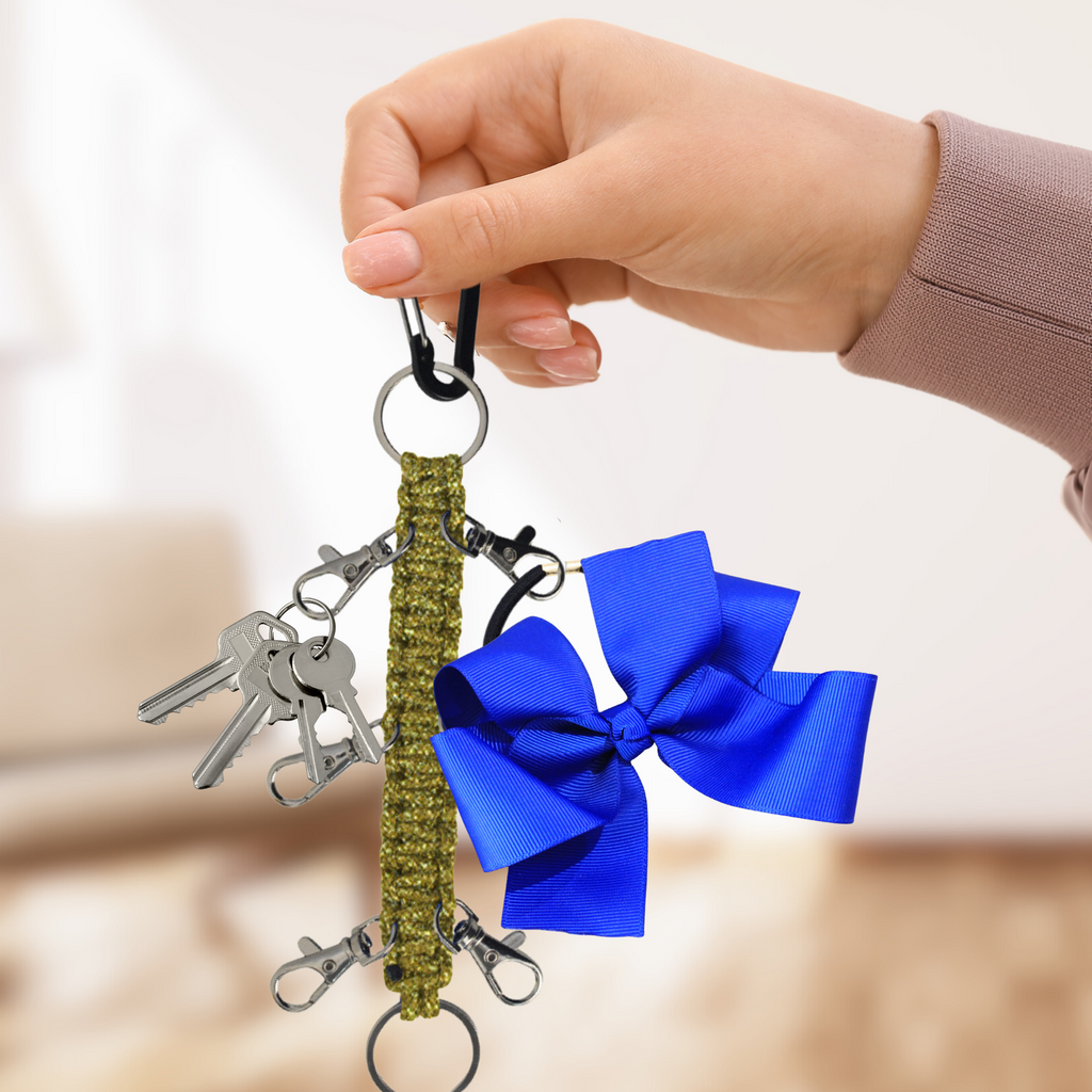 Keep your bows organized and ready to go with the NGIL Paracord Cheer Hairbow Holder—a must-have for every cheerleader, dancer, or gymnastics enthusiast! Made with high-quality paracord, this lightweight yet durable accessory features a carabiner, lobster clasp, and key ring, giving you versatile options to clip it anywhere.