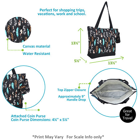 The NGIL Canvas Tote Bag is the perfect accessory for your day-to-day needs. With its top zipper closure, this tote is perfect for stashing all of your essentials securely and easily accessible. Crafted from high-quality canvas, this bag measures 13½" x 5½" x 13½" and features an approximately 9" handle drop. Plus, it also comes with an attached coin purse with dimensions of 4¼" x 5¼". Stylishly designed to suit any occasion or outfit, this trusty tote puts function and fashion hand in hand. Our ngil canvas tote bag also comes in varieties of prints, so you will find one that matches you perfectly ! So don't worry about what to carry your everyday items – our NGIL Canvas Tote has got you covered!